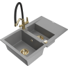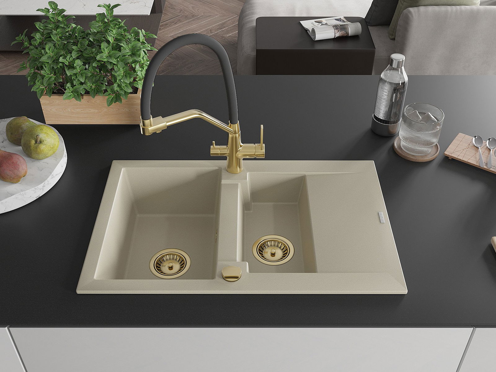 Mexen Gaspar granitny izlietne ar 1,5 kameru, notekas un duo virtuves jaucējkrānu, bēšs - 6507-69-671701-57-G