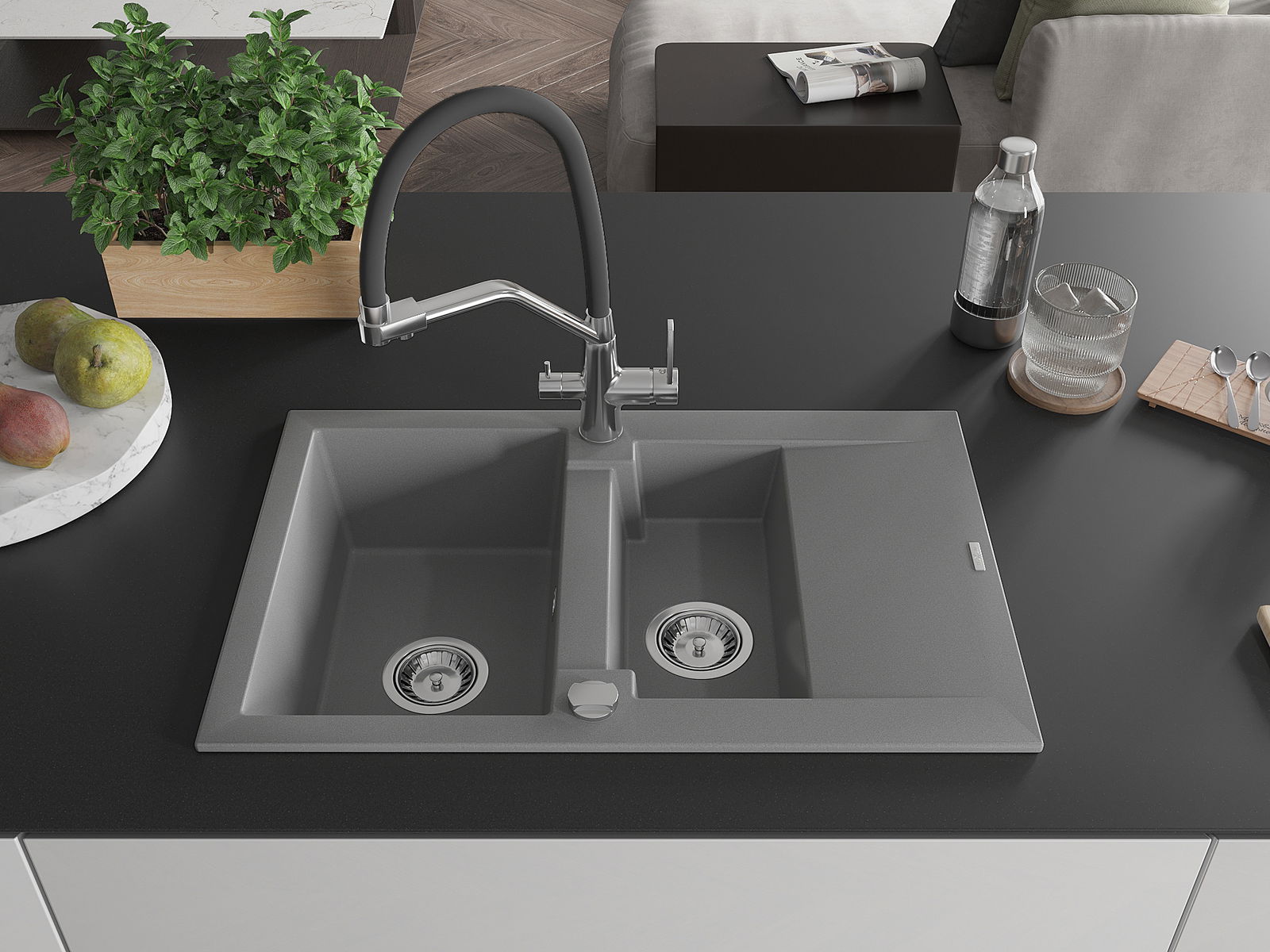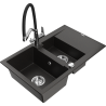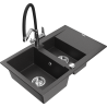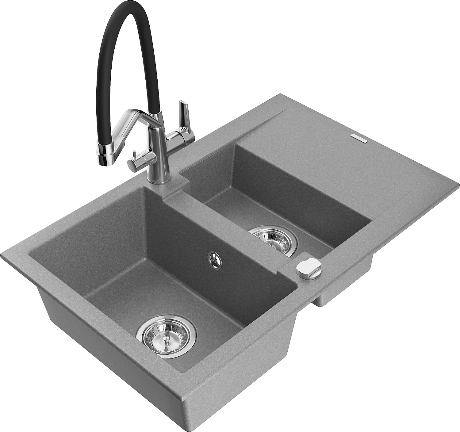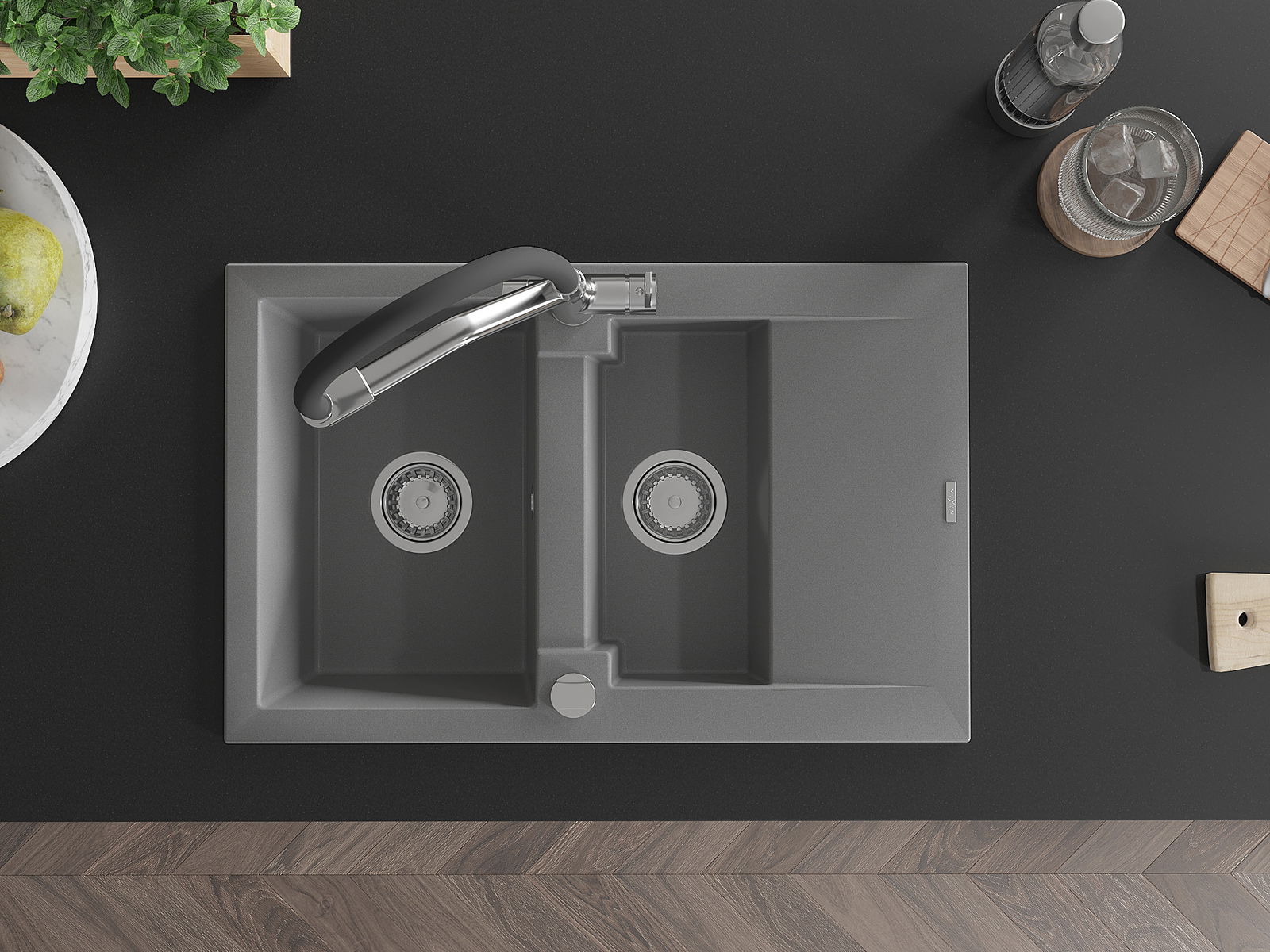 Mexen Gaspar granitizlietne ar 1,5 kameru un notekas sistēmu un virtuves krānu Duo, pelēka - 6507-71-671701-07