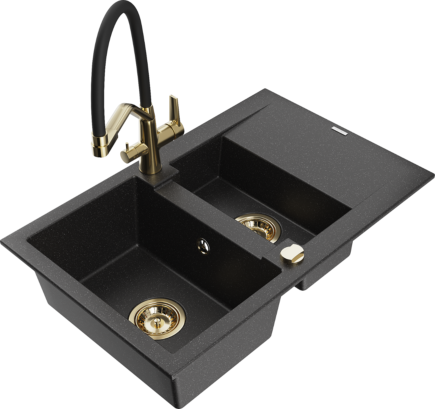 Mexen Gaspar granitizlietne 1,5 nodalījumu ar noteku un virtuves jaucējkrānu Duo, melns/sudraba - 6507-73-671701-57-G