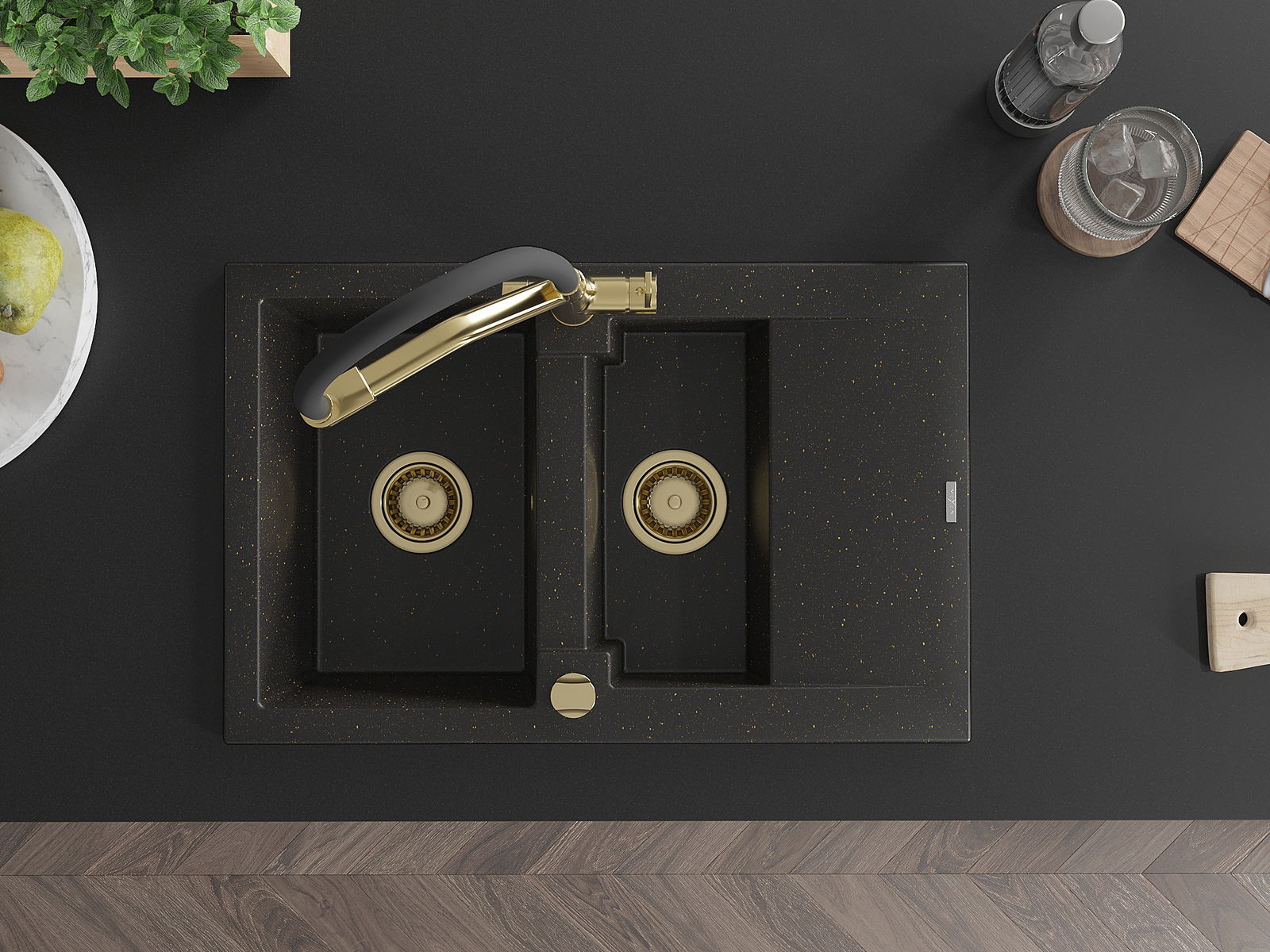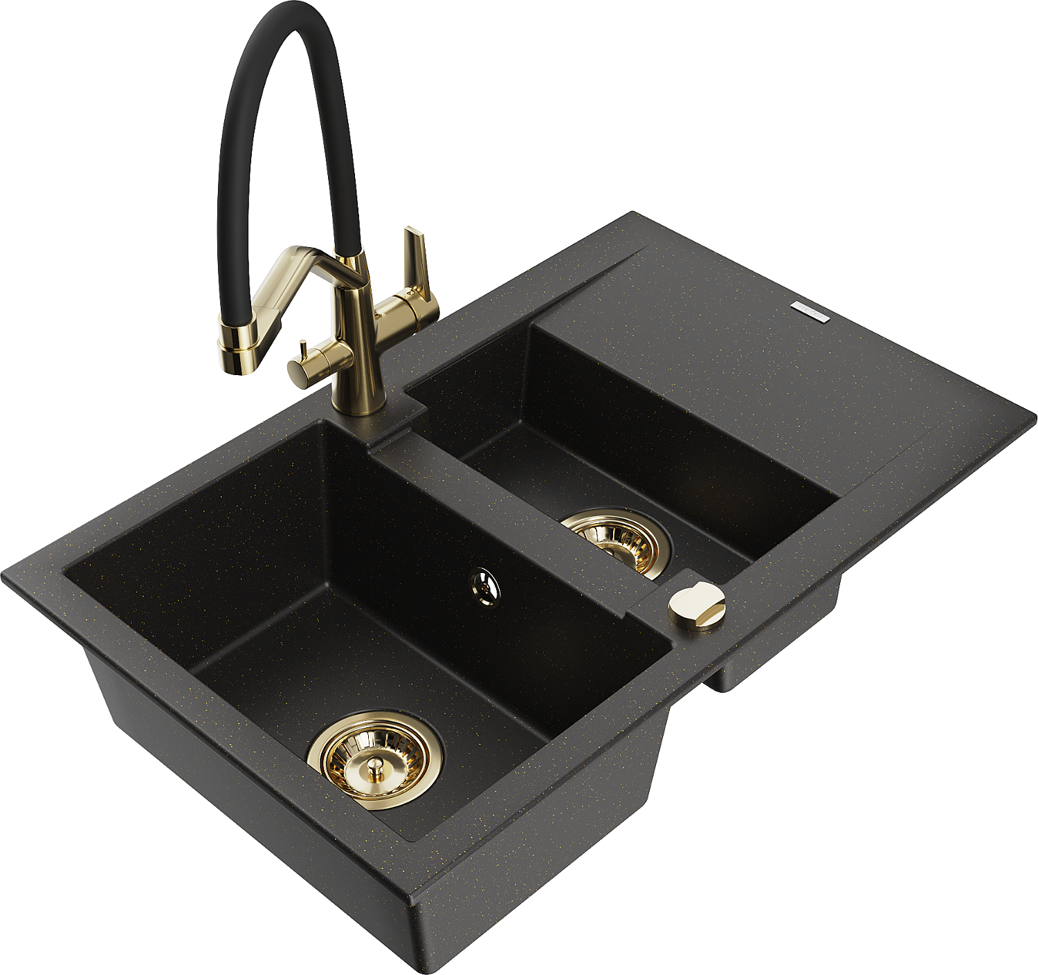 Mexen Gaspar granitizlietne 1,5 nodalījuma ar notekas un virtuves krānu Duo, melns/zeltains metālisks - 6507-75-671701-57-G