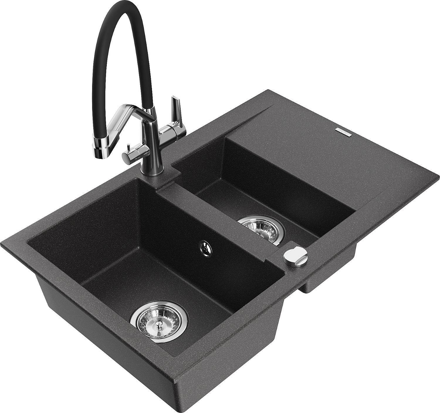 Mexen Gaspar granitizlietne 1,5-nodalīgums ar notecinātāju un virtuves jaucējkrānu Duo, melns ar plankumiem - 6507-76-671701-07