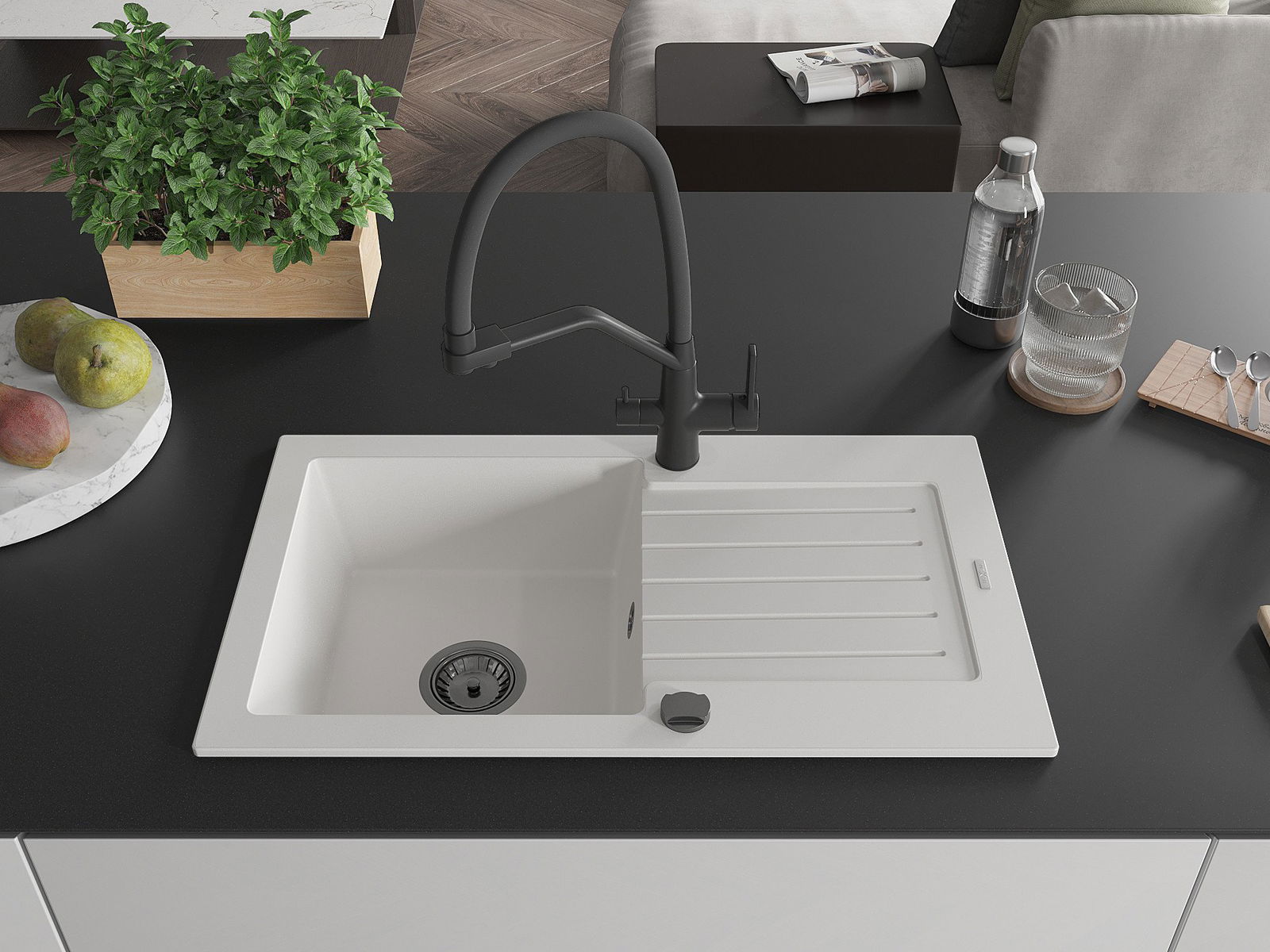 Izlietnes virsma ir izturīga pret traipiem un krāsas izmaiņām, tāpēc to ir viegli uzturēt tīru un tā saglabā savu krāsu ilgu lietošanas laiku. Estētiski un praktiski papildina jebkuru virtuvi.