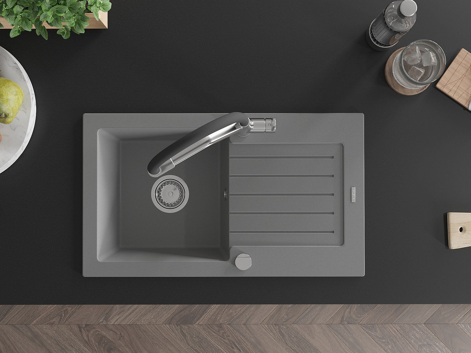 Mexen Pablo granitizlietne vienkameru izlietne ar notecētavu un virtuves maisītāju Duo, pelēka - 6510-71-671701-07