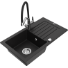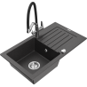 Mexen Pablo 1-kameras granīta izlietne ar nosūcēju un virtuves jaucējkrānu Duo, melns/sudraba metālika - 6510-73-671701-07