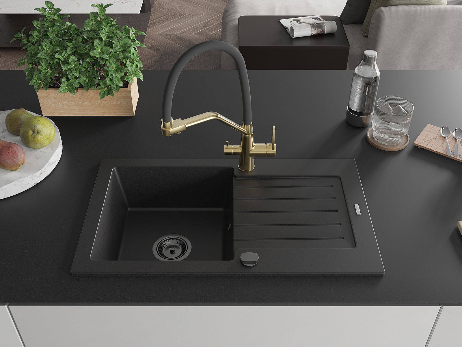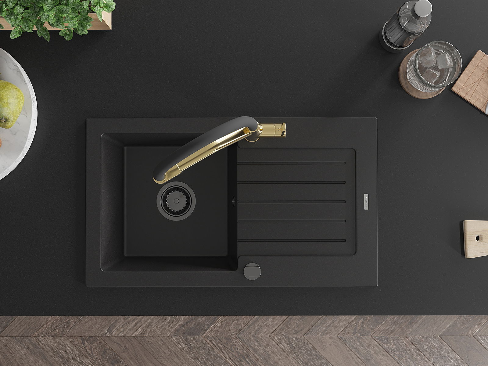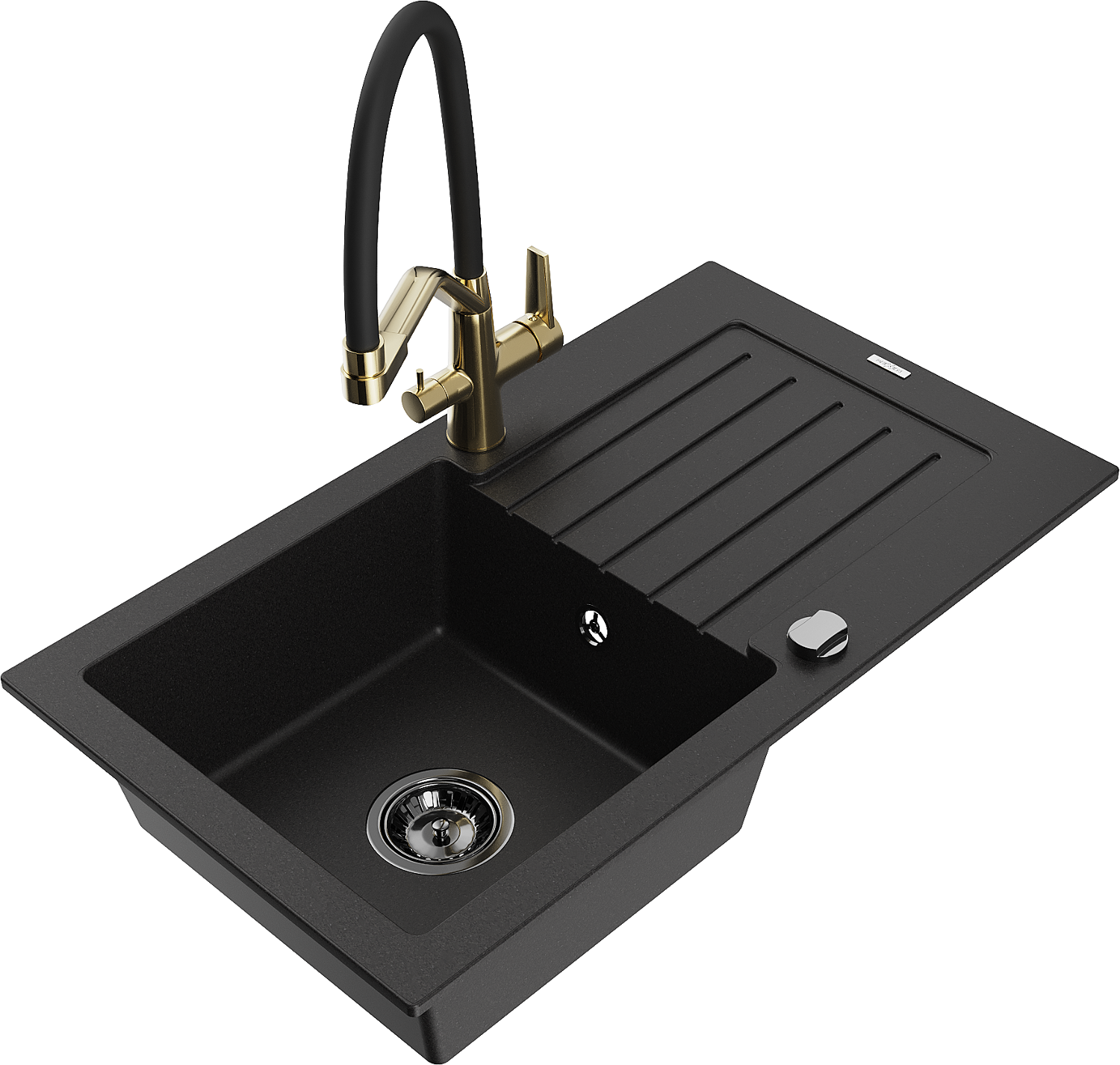 Mexen Pablo granitais izlietne ar 1 nodalījumu, ar noteku un virtuves krānu Duo, melna - 6510-77-671701-57-B