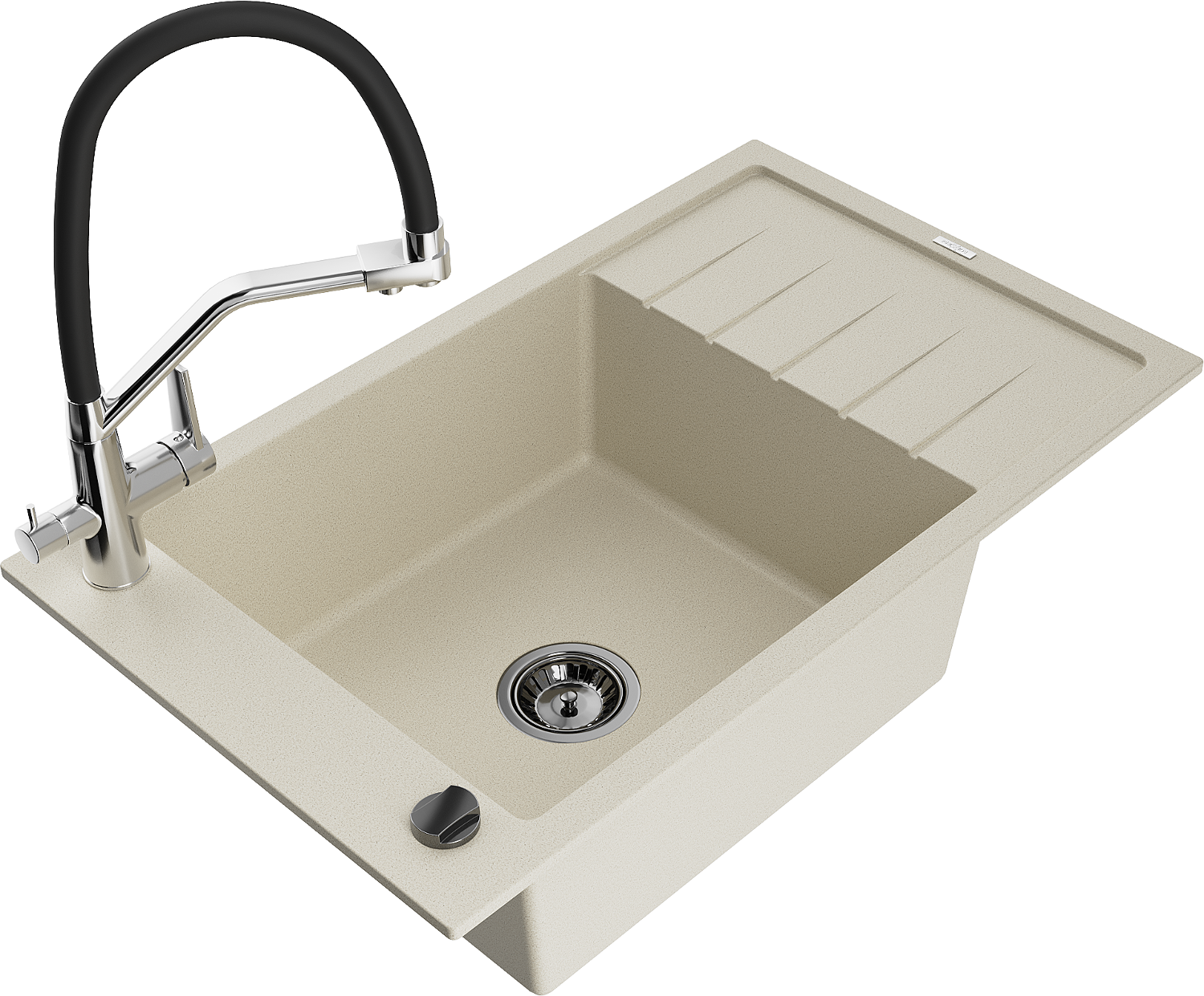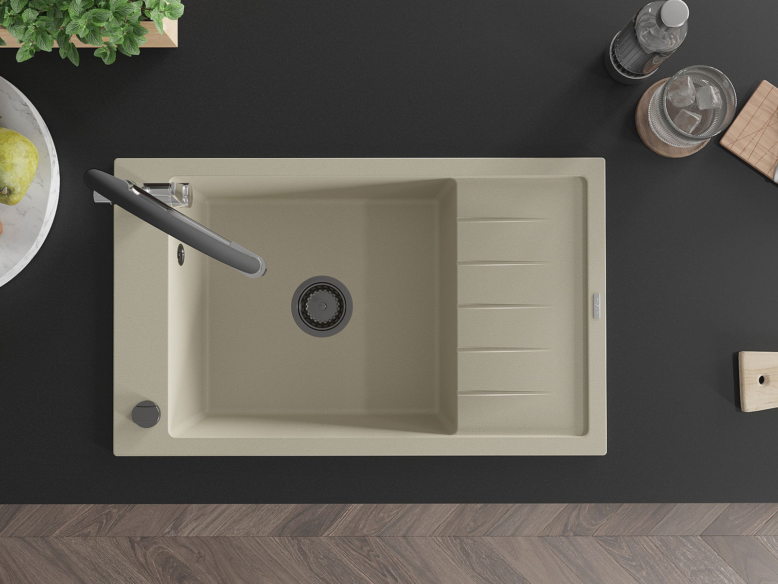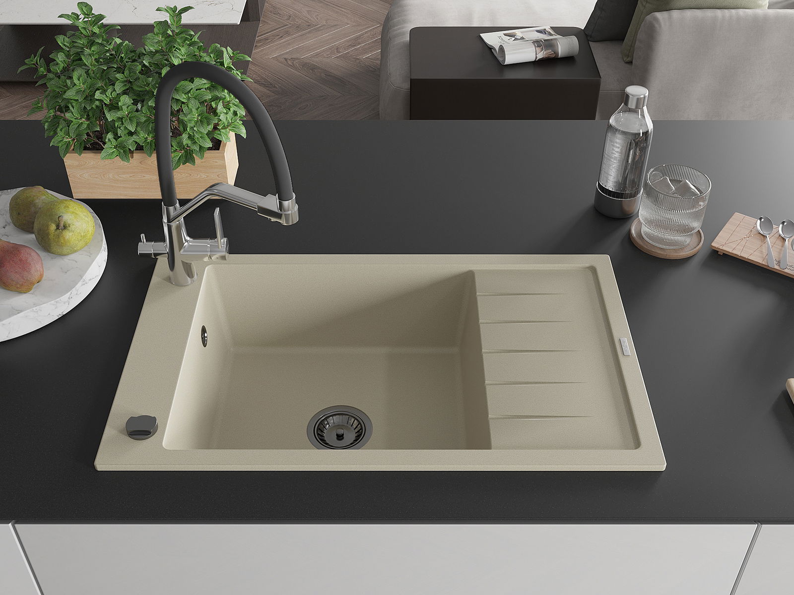 Mexen Elias grāmatveida granīta izlietne ar vienu nodalījumu un virtuves jaucējkrānu Duo, bēšs - 6511-69-671701-07-B