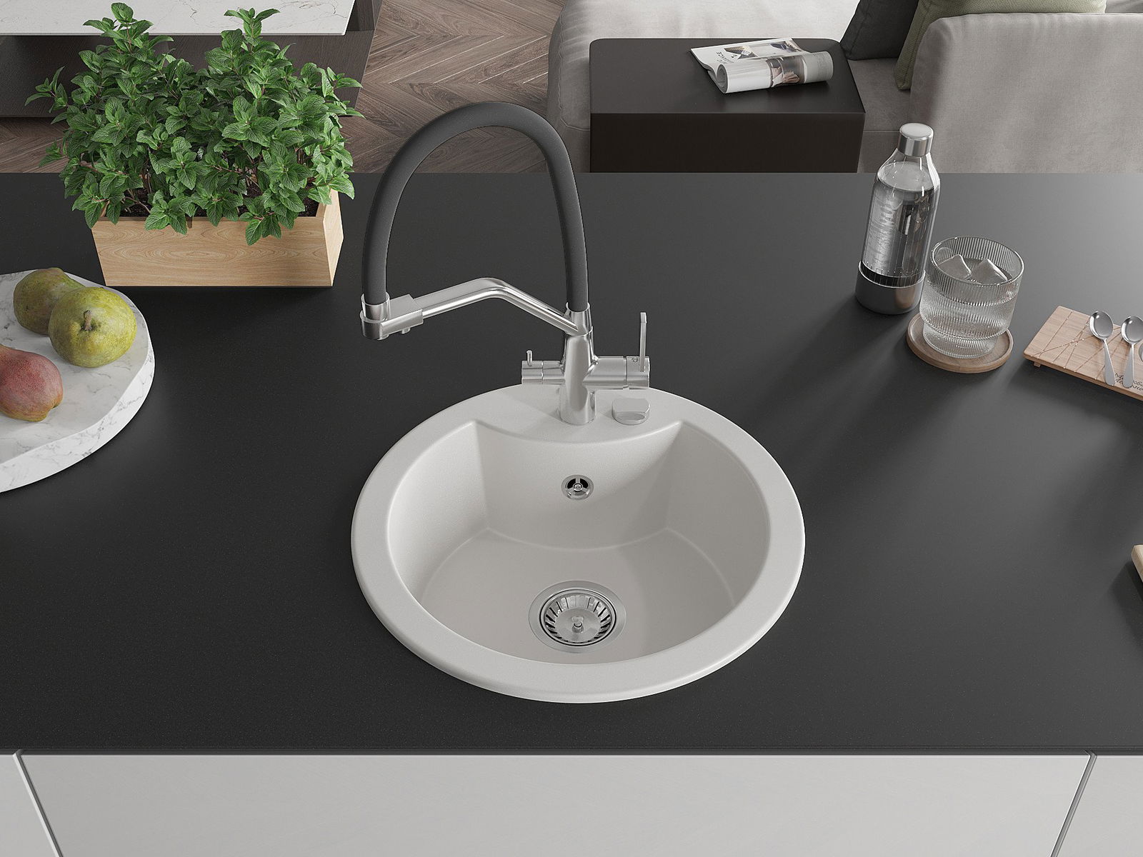 Izlietnes virsma ir izturīga pret traipiem un krāsas izmaiņām, tāpēc to ir viegli uzturēt tīru un tā saglabā savu krāsu ilgu lietošanas laiku. Estētiski un praktiski papildina jebkuru virtuvi.