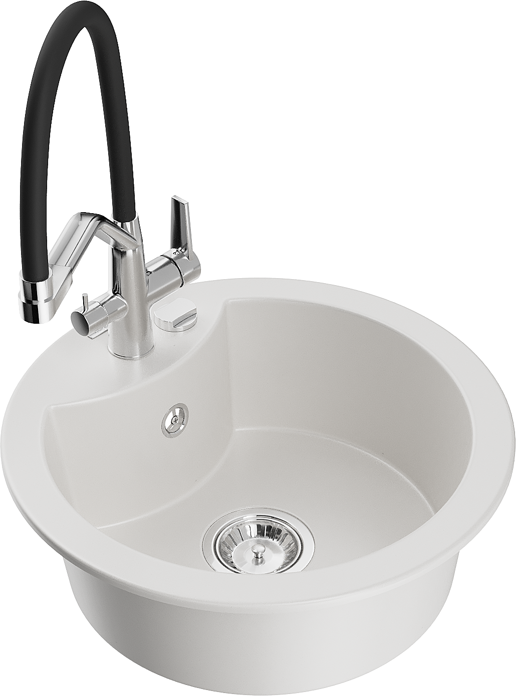 Mexen Diego granit izlietne ar 1 nodalījumu un virtuves jaucējkrānu Duo, balta - 6512-20-671701-07