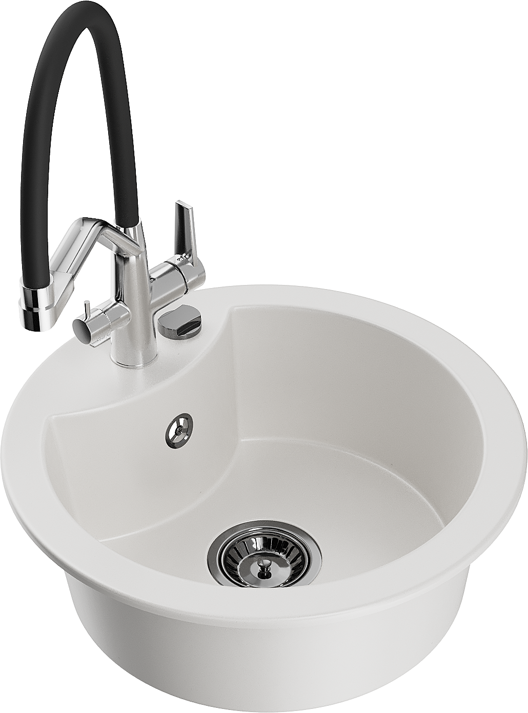 Mexen Diego grants izlietne ar vienu nodalījumu un virtuves jaucējkrāns Duo, balts - 6512-20-671701-07-B