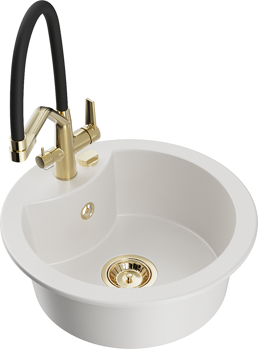 Mexen Diego granitā izlietne ar vienu nodalījumu un Duo virtuves jaucējkrānu, balta - 6512-20-671701-57-G
