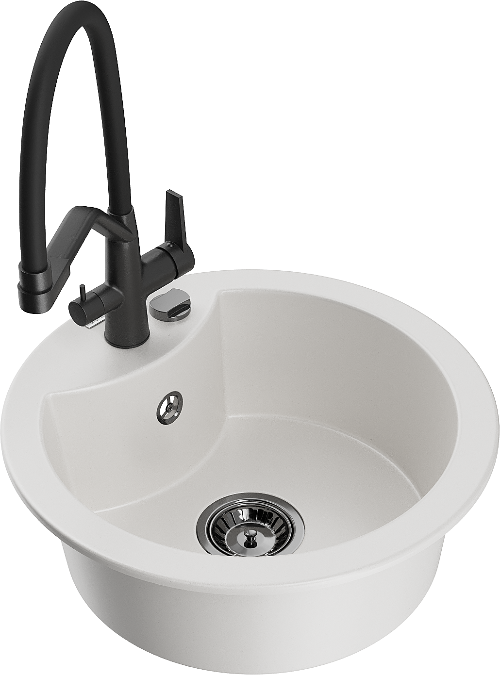 Mexen Diego granīta izlietne 1-kameras ar virtuves jaucējkrānu Duo, balta - 6512-20-671701-70-B