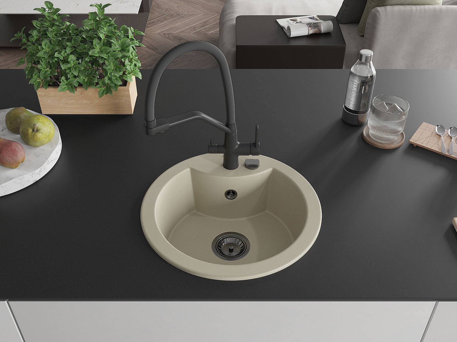 Izlietnes virsma ir izturīga pret traipiem un krāsas izmaiņām, tāpēc to ir viegli uzturēt tīru un tā saglabā savu krāsu ilgu lietošanas laiku. Estētiski un praktiski papildina jebkuru virtuvi.