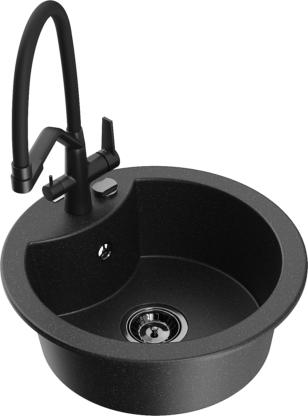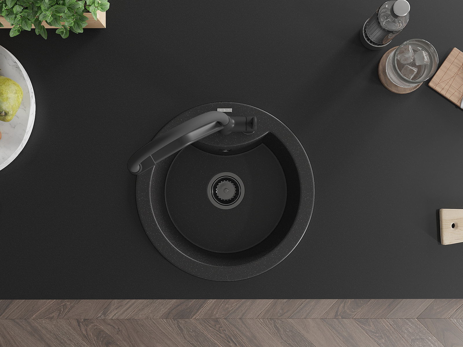 Mexen Diego granitēta viena nodalījuma izlietne ar virtuves jaucējkrānu Duo, melna/sudraba metāliks - 6512-73-671701-70-B
