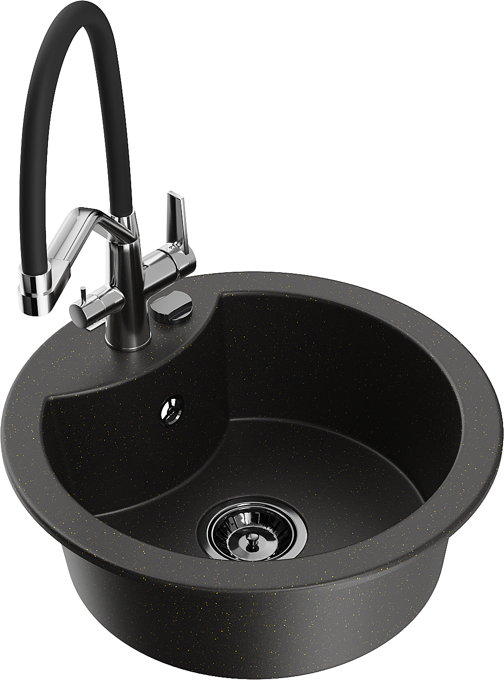 Mexen Diego granitais izlietne ar 1 nodalījumu un virtuves jaucējkrānu Duo, melns/zelta metālisks - 6512-75-671701-07-B