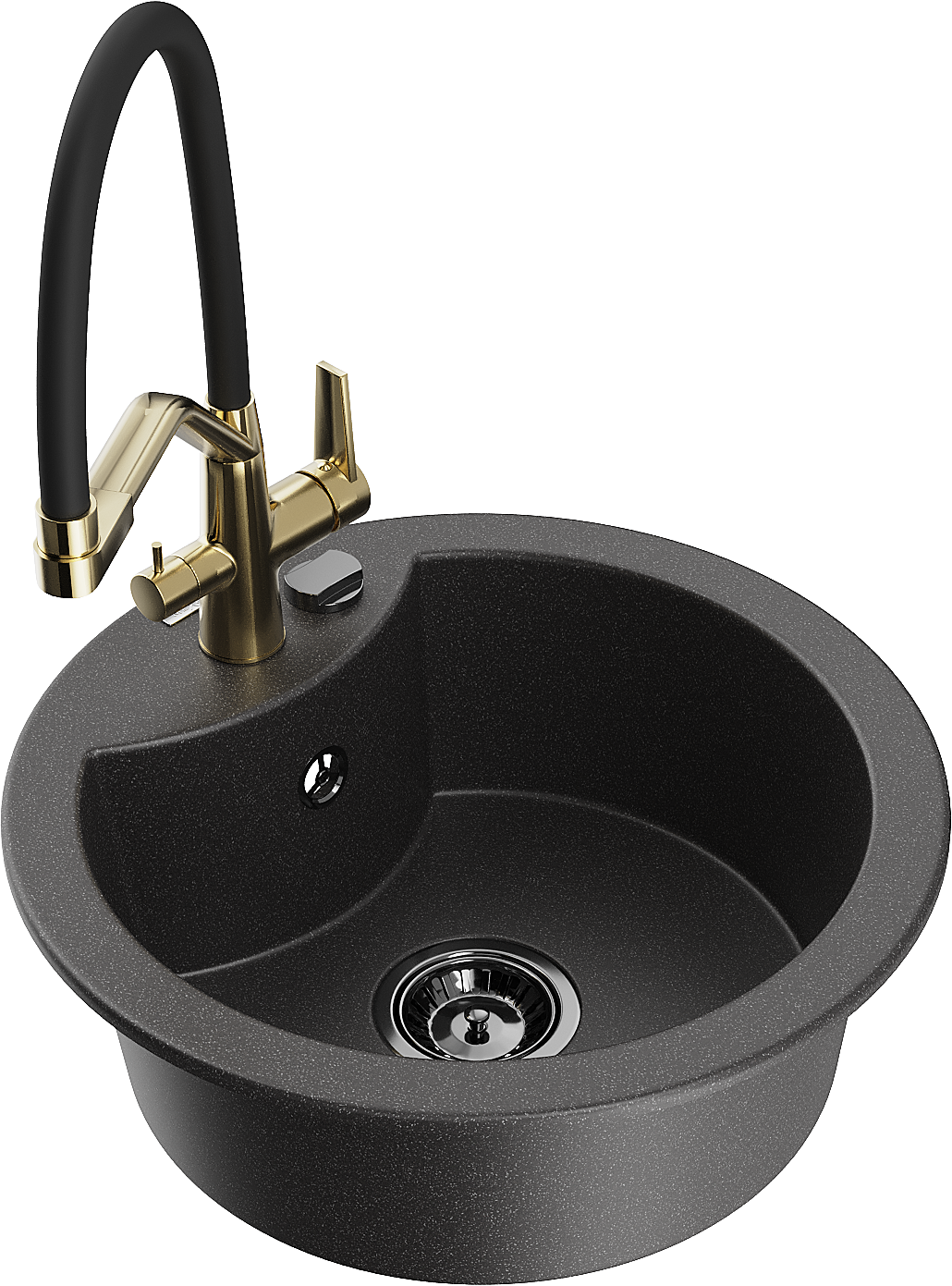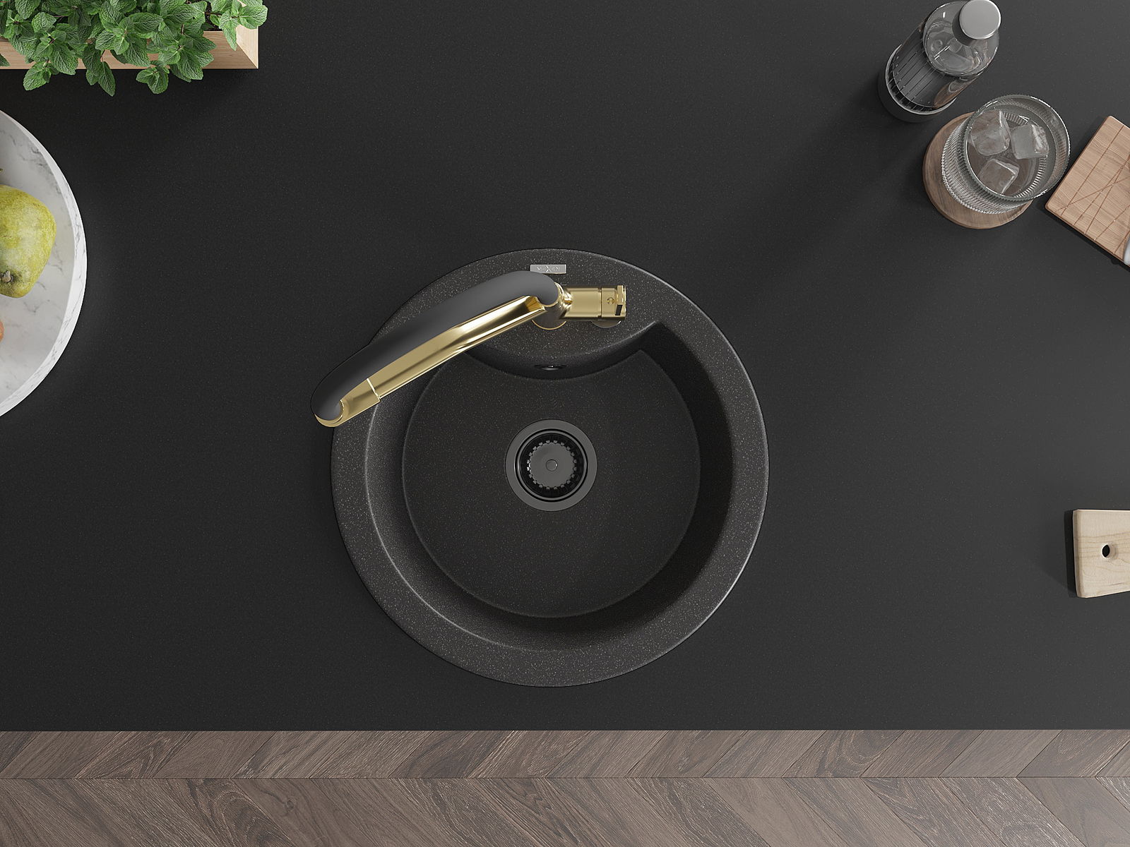 Mexen Diego granitizlietne ar vienu nodalījumu un virtuves jaucējkrānu Duo, melns ar punktiem - 6512-76-671701-57-B