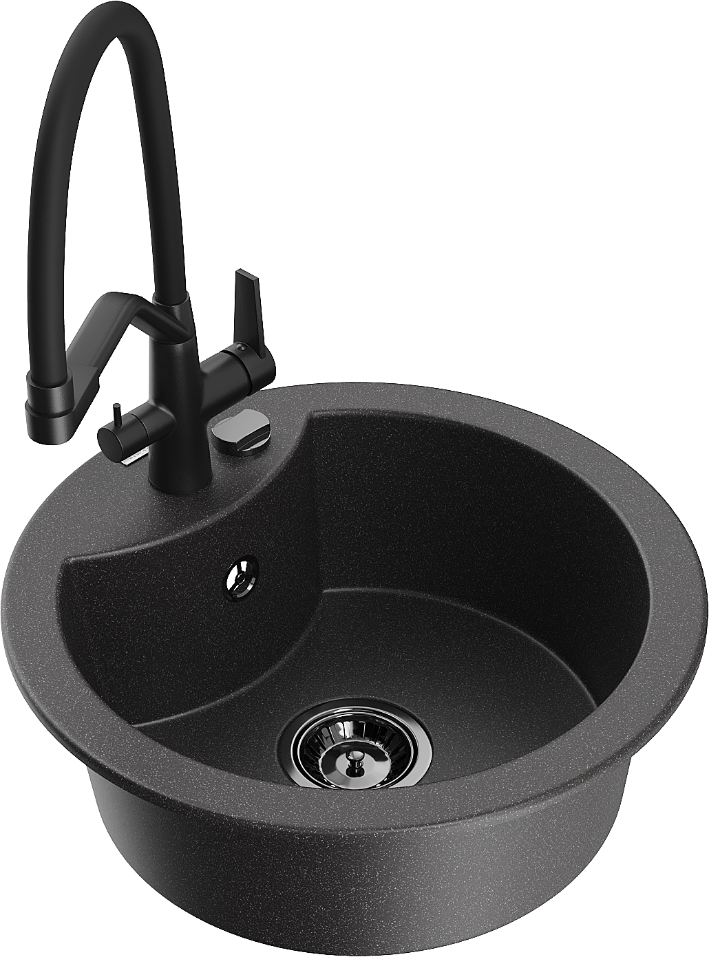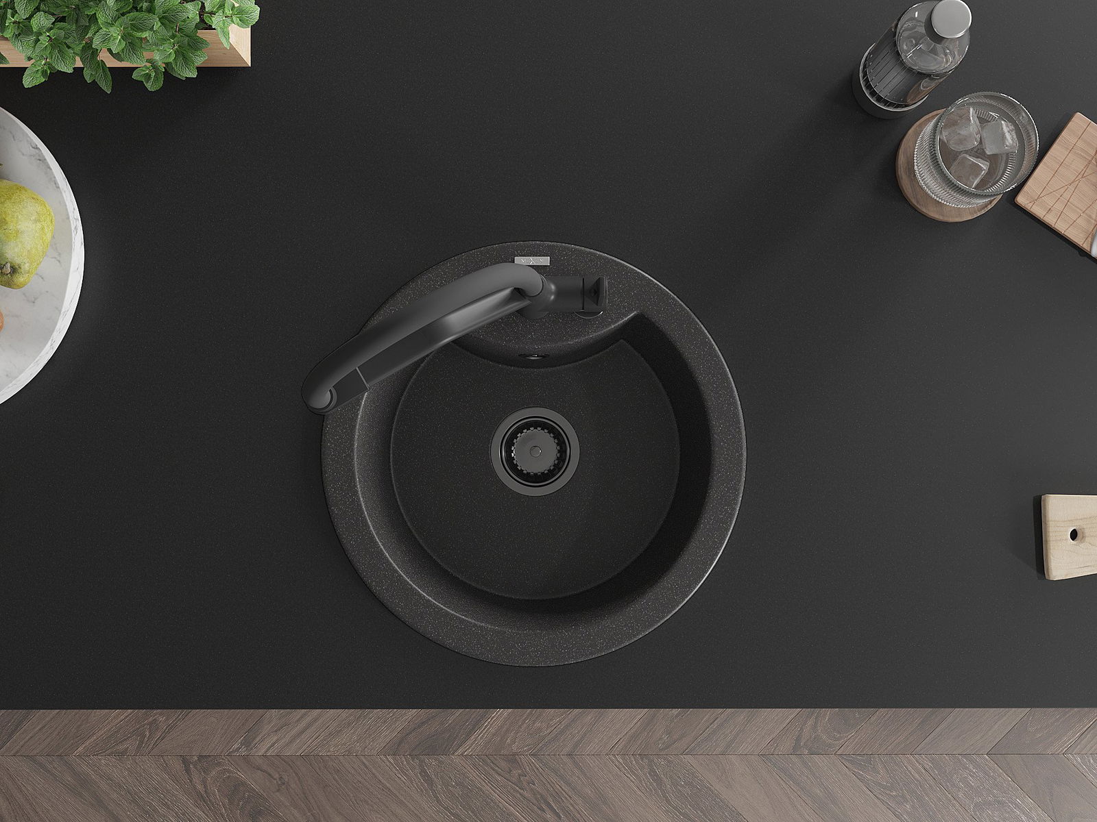 Mexen Diego granīta izlietne ar vienu nodalījumu un Duo virtuves jaucējkrānu, melna ar punktiem - 6512-76-671701-70-B