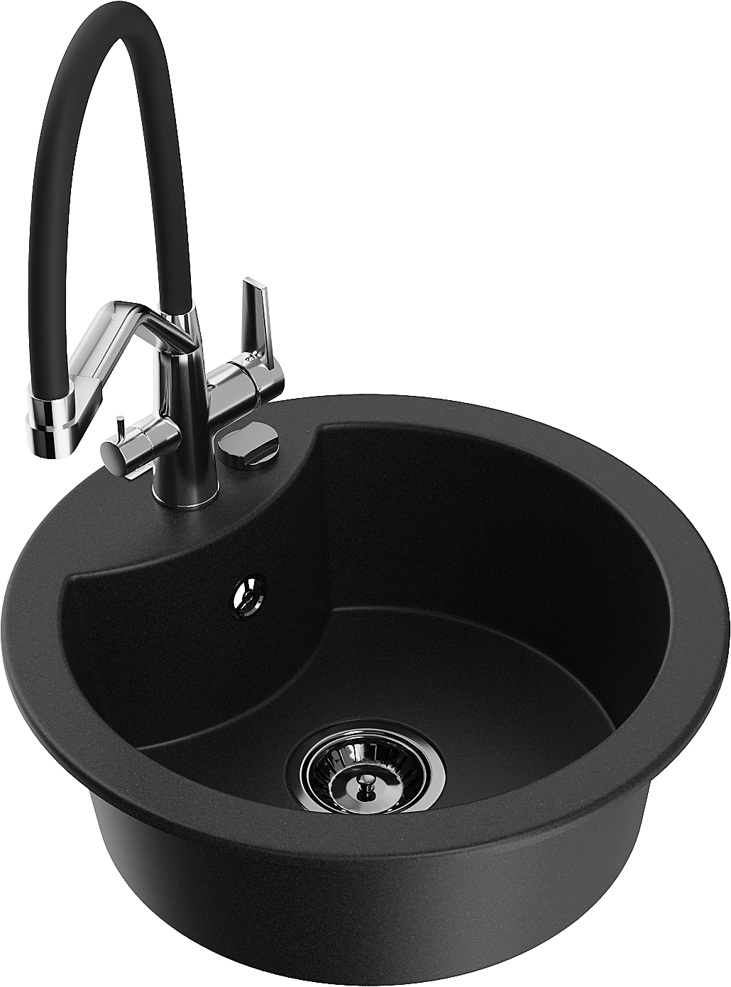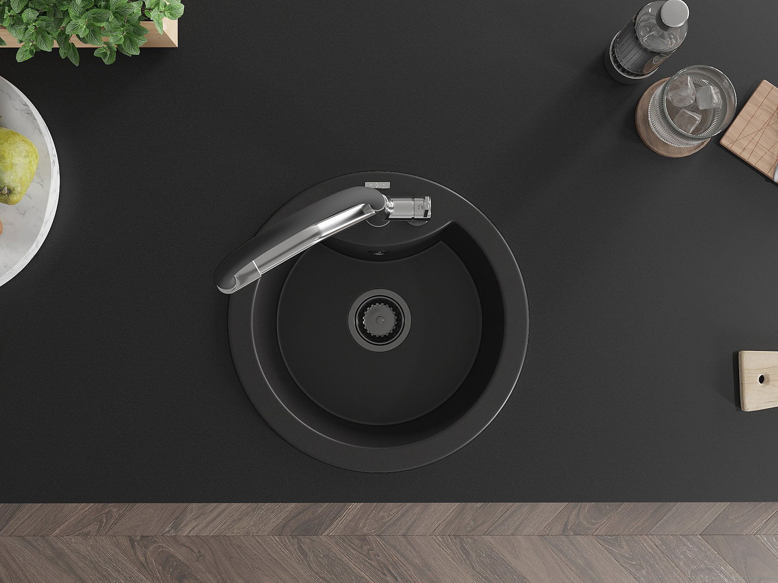 Mexen Diego granīta izlietne ar 1 nodalījumu un virtuves jaucējkrānu Duo, melna - 6512-77-671701-07-B