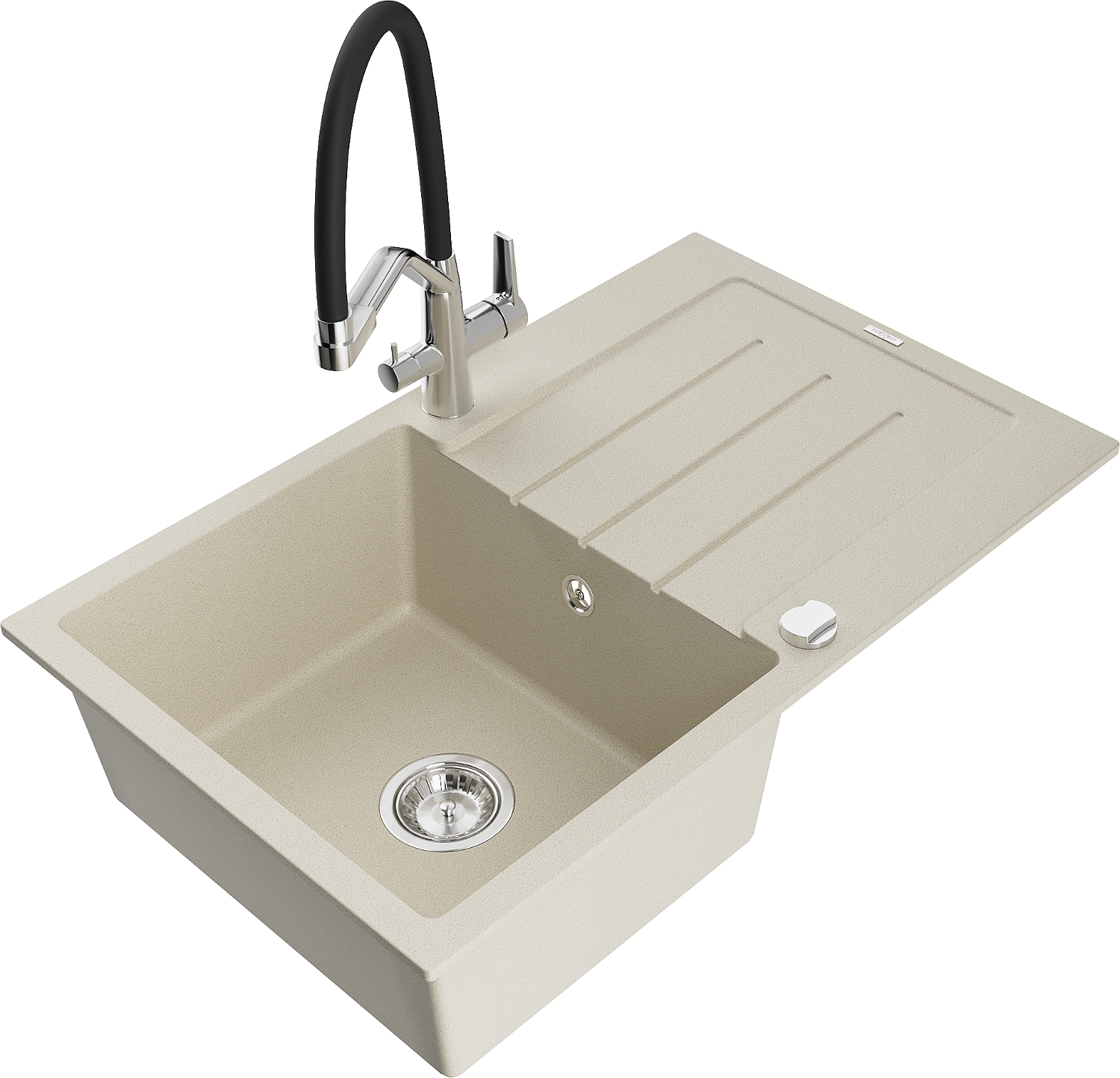Mexen Bruno Granitizlietnes ar vienu nodalījumu un notecināšanas virsmu, ar virtuve maisītāju Duo, bēša - 6513-69-671701-07
