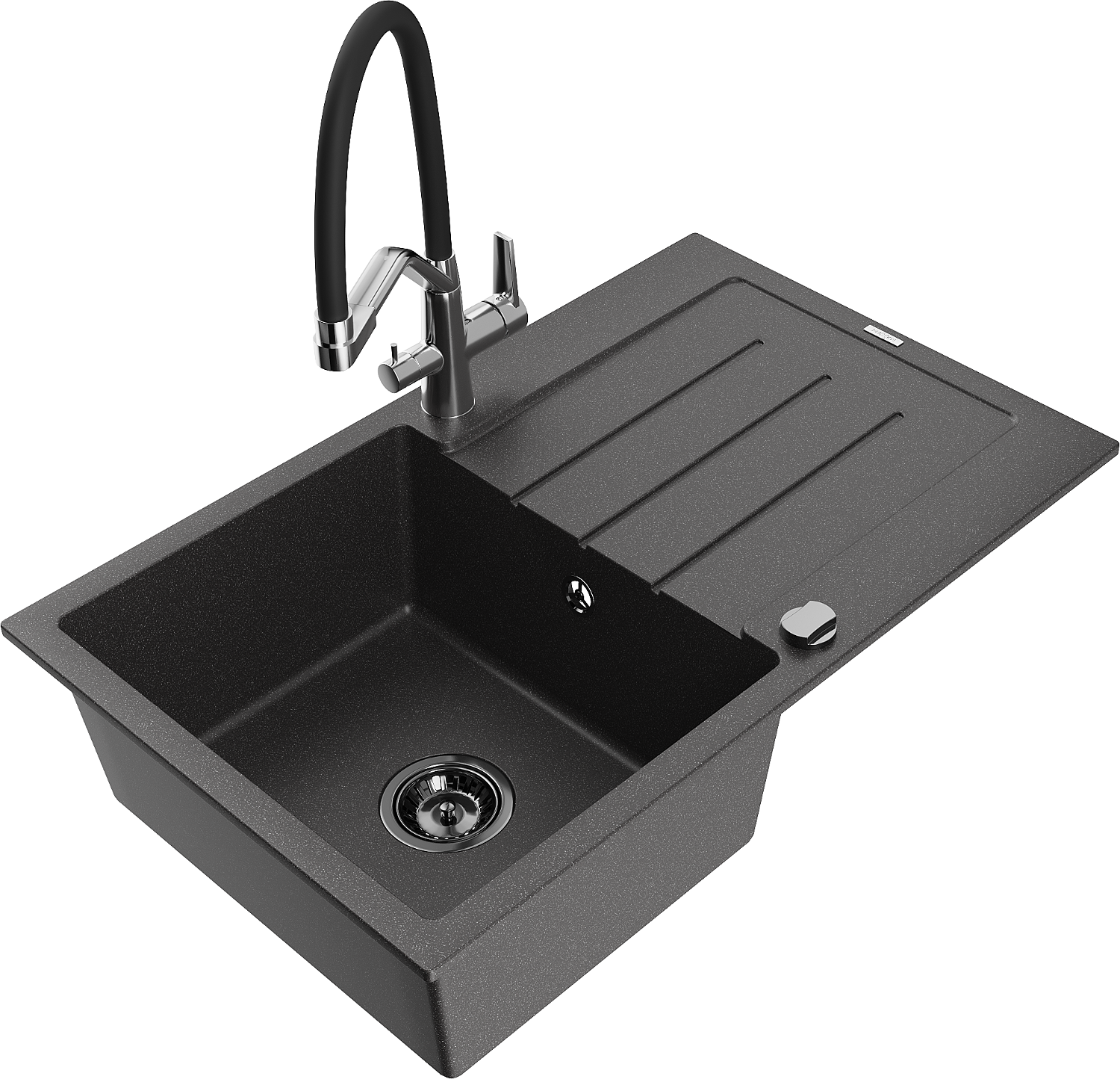 Mexen Bruno vienas granīta izlietne ar noteku un virtuves jaucējkrānu Duo, melna ar punktiem - 6513-76-671701-07-B