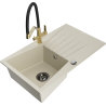 Mexen Cesar granitizlietne ar vienu nodalījumu ar noteces plāksni un virtuves jaucējkrānu Duo, melns/zeltīts metāliskums