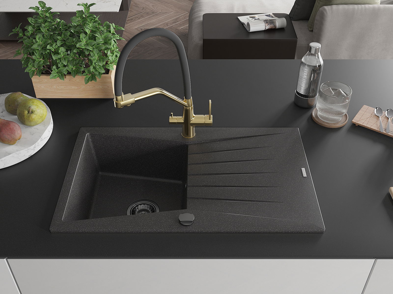 Izlietne ir izgatavota no augstas kvalitātes granīta. Tā ir eleganta un, galvenokārt, praktiska papildinājums jebkurai virtuvei, neatkarīgi no tās stila. Augsta kvalitāte un granīta izturība nodrošina ilgstošu lietošanu.