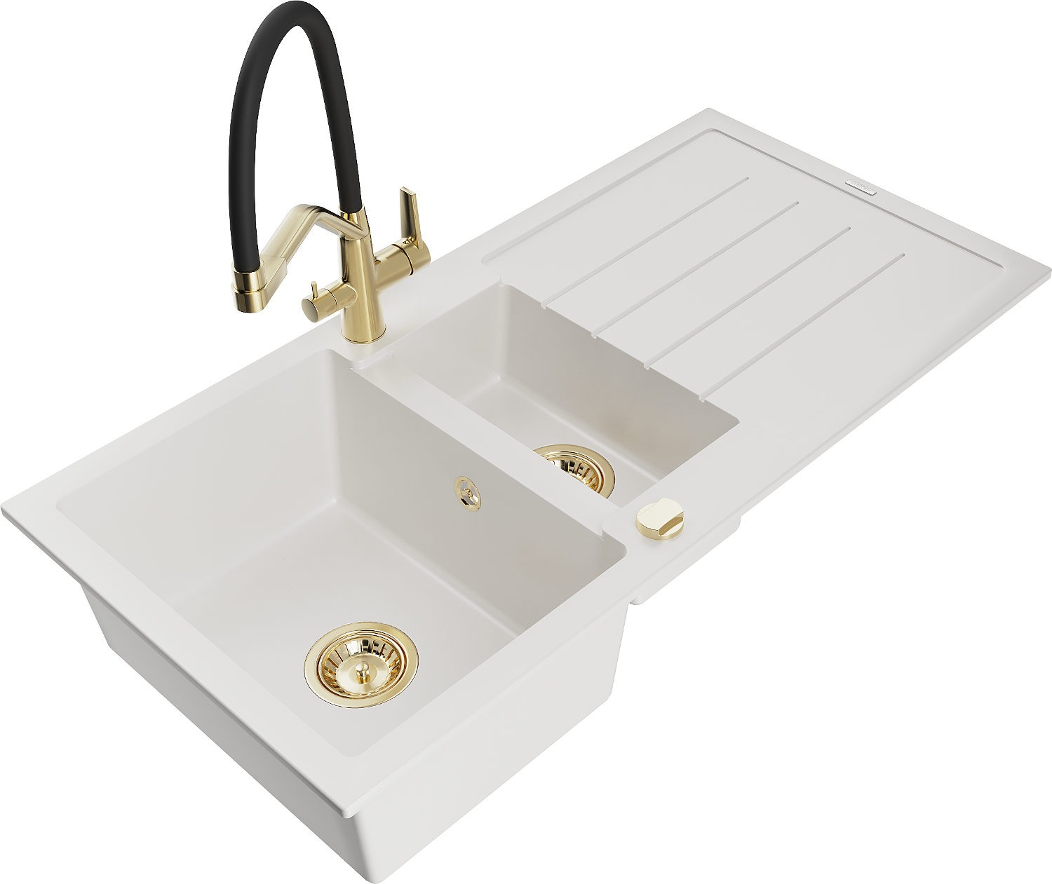 Mexen Andres 1,5-nodalainis granīta izlietne ar noteku un virtuves jaucējkrānu Duo, balta - 6515-20-671701-57-G