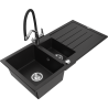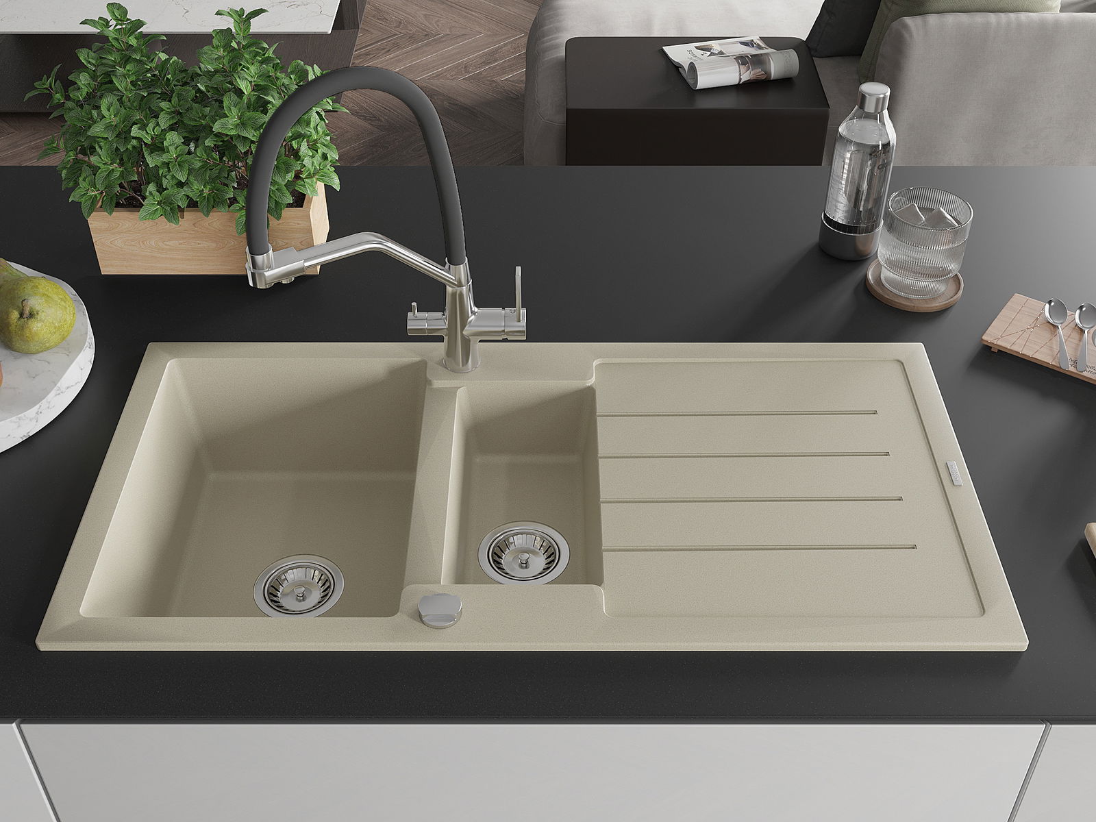 Mexen Andres granīta izlietne 1,5 nodalījumu ar noteku un virtuves jaucējkrānu Duo, bēšs - 6515-69-671701-07