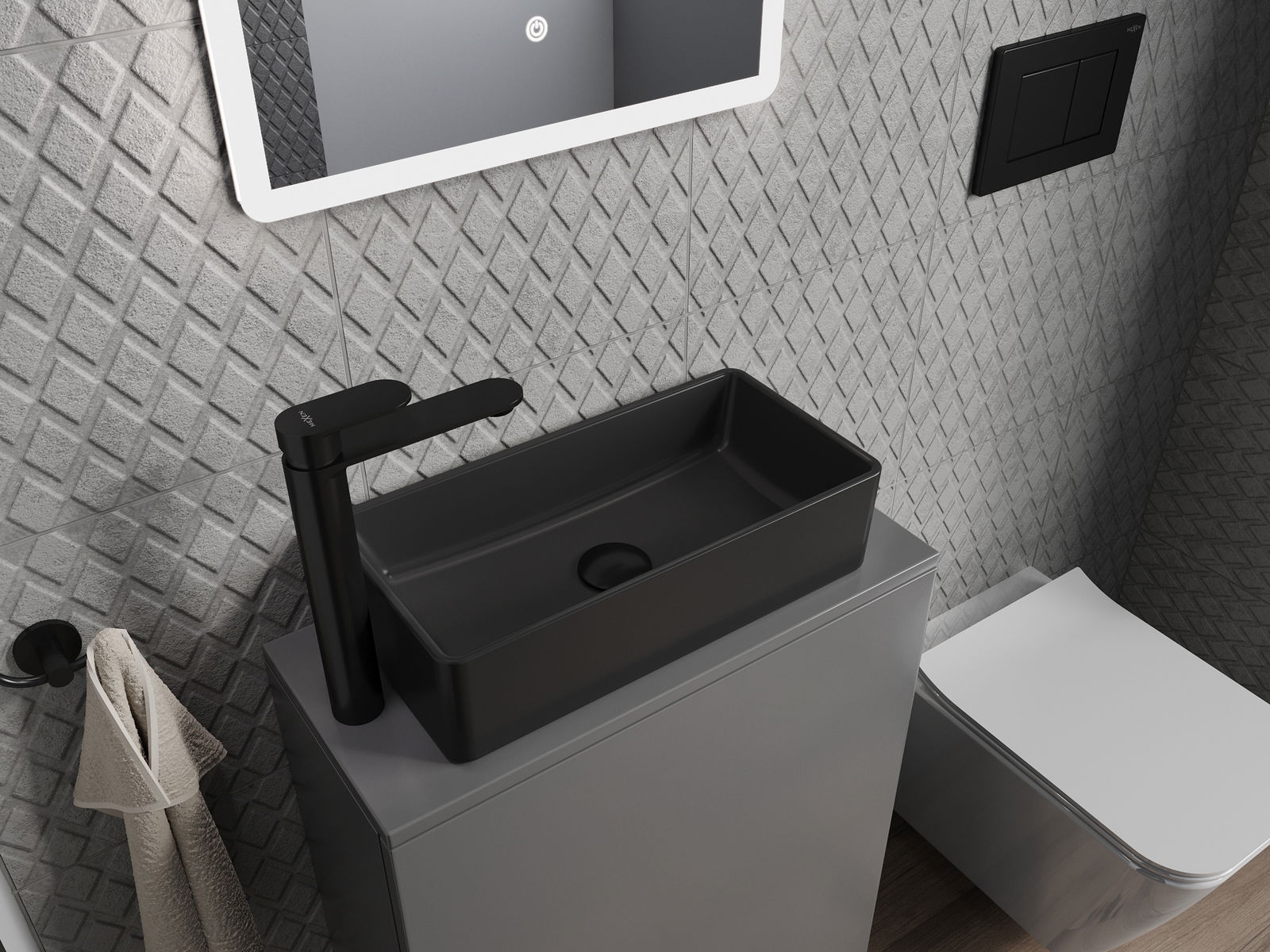 Matētā keramikas virsma lieliski izceļ produkta krāsu raksturu, piešķirot tam unikālu un izteiksmīgu apdari. Smalka matētās keramikas struktūra vannas istabā ienes eleganci, radot estētisku telpu.