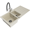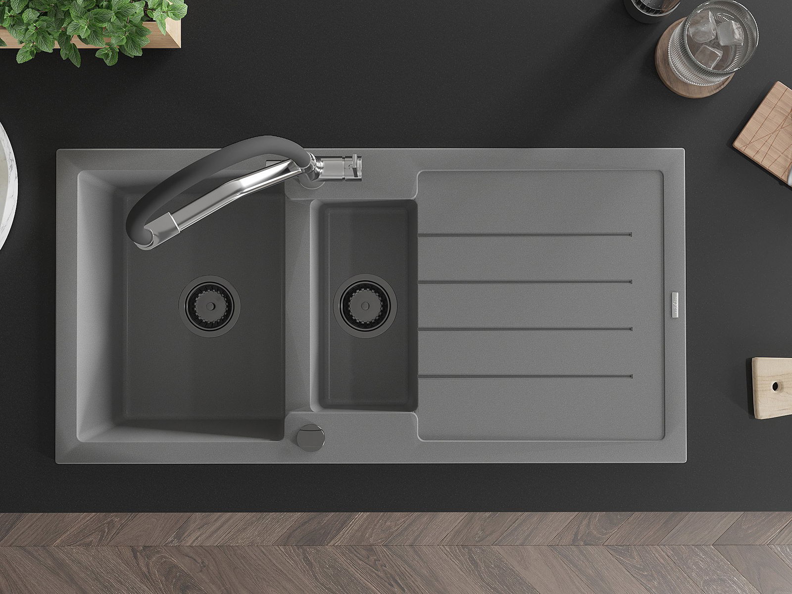 Mexen Andres granīta izlietne ar 1,5 nodalījumiem un noteces virsmu, ar virtuves krānu Duo, pelēka - 6515-71-671701-07-B