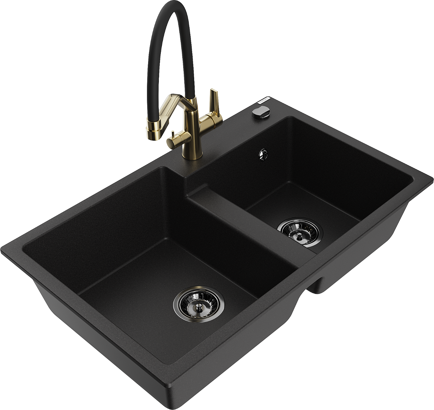 Mexen Tomas divpadsmit granīta divkameru izlietne ar virtuves jaucējkrānu Duo, melna - 6516-77-671701-57-B