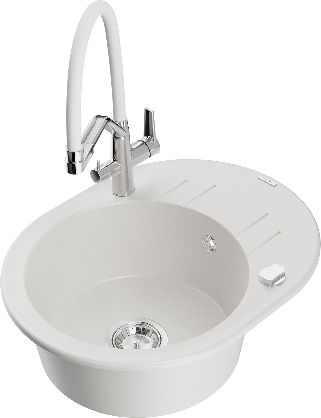 Mexen Kevin granitizlietne ar 1 nodalījumu ar virtuves jaucējkrānu Duo, balts - 6517-20-671701-02