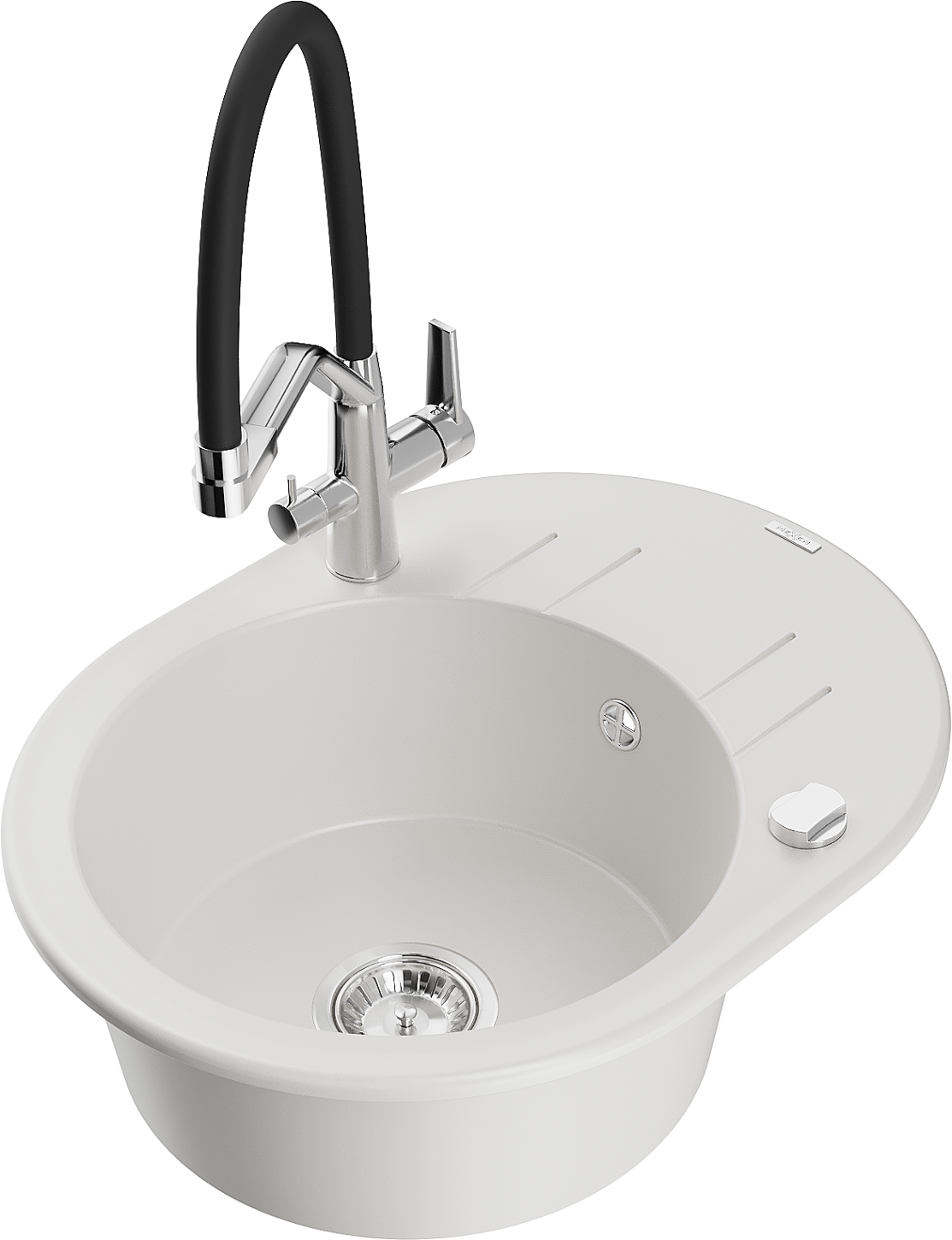 Mexen Kevin granitizlietne 1-nodalais ar virtuves jaucējkrānu Duo, balts - 6517-20-671701-07