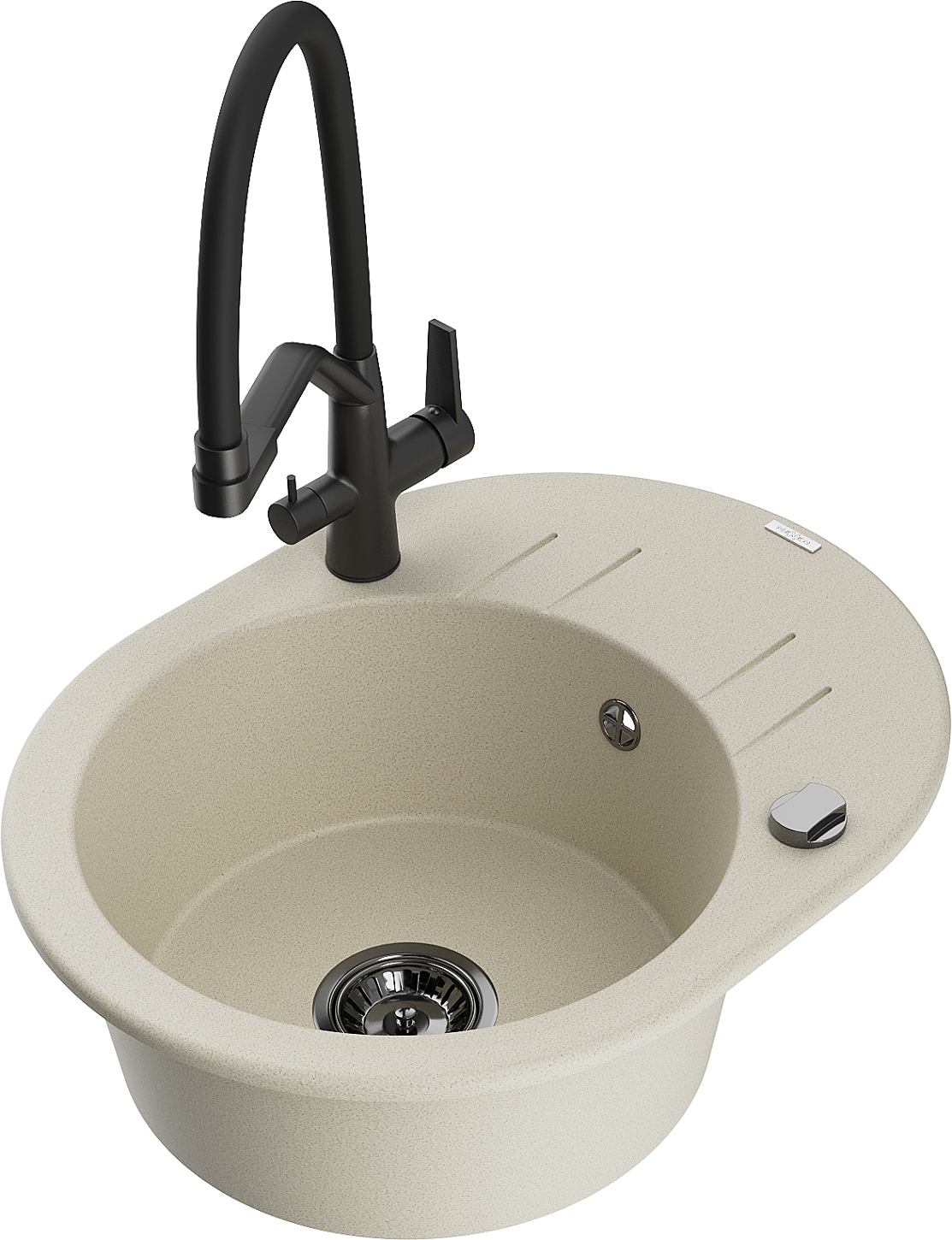 Mexen Kevin granitā izlietne ar vienu nodalījumu un virtuves jaucējkrānu Duo, bēša - 6517-69-671701-70-B