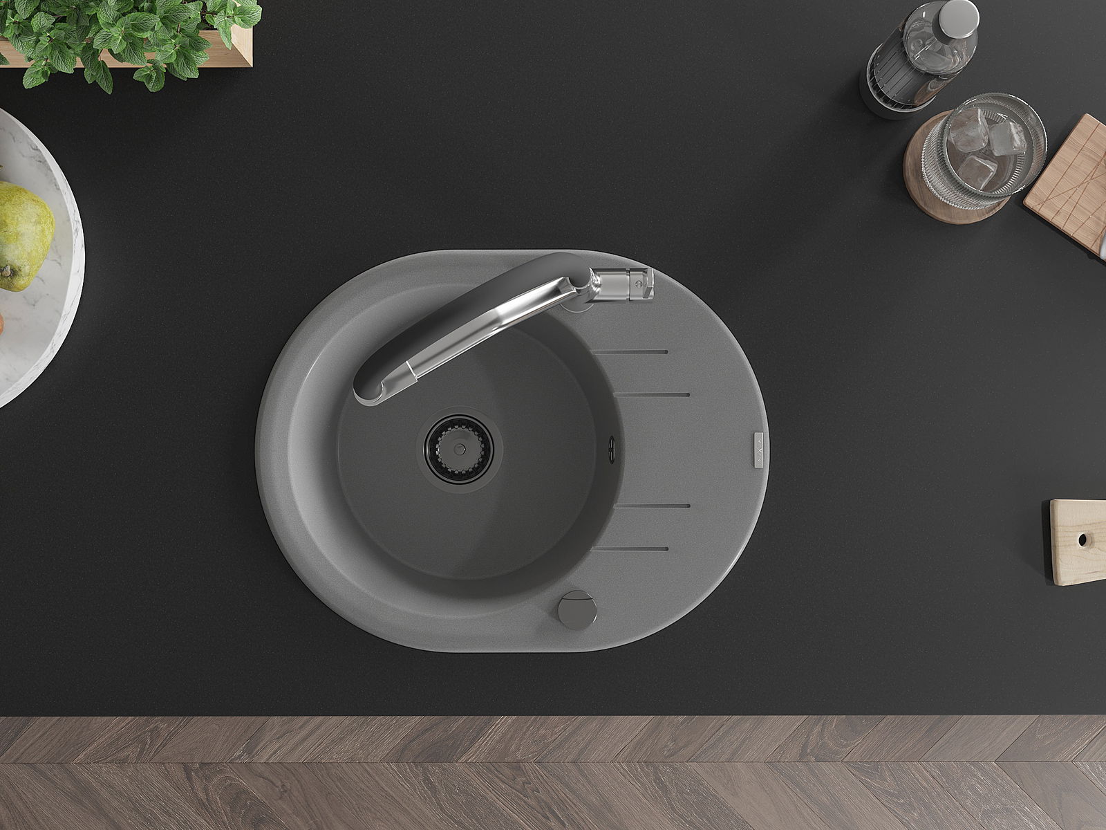 Mexen Kevin granitizlietne 1-nodaluma ar virtuves krānu Duo, pelēks - 6517-71-671701-07-B