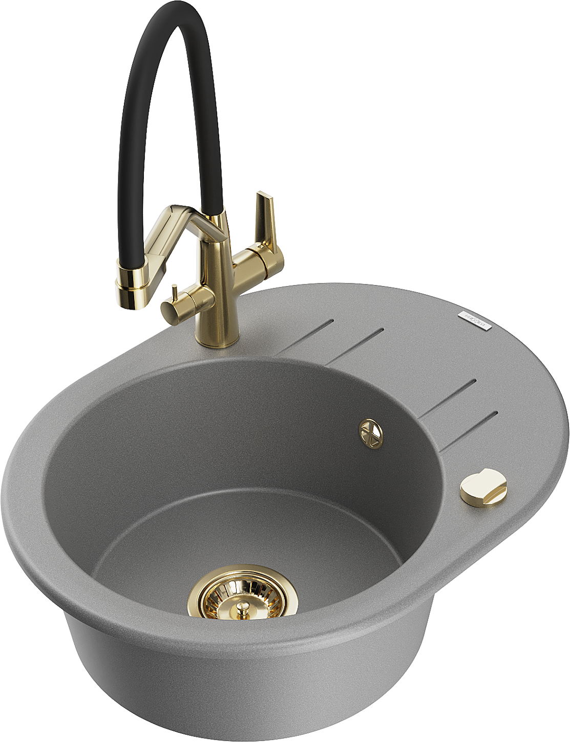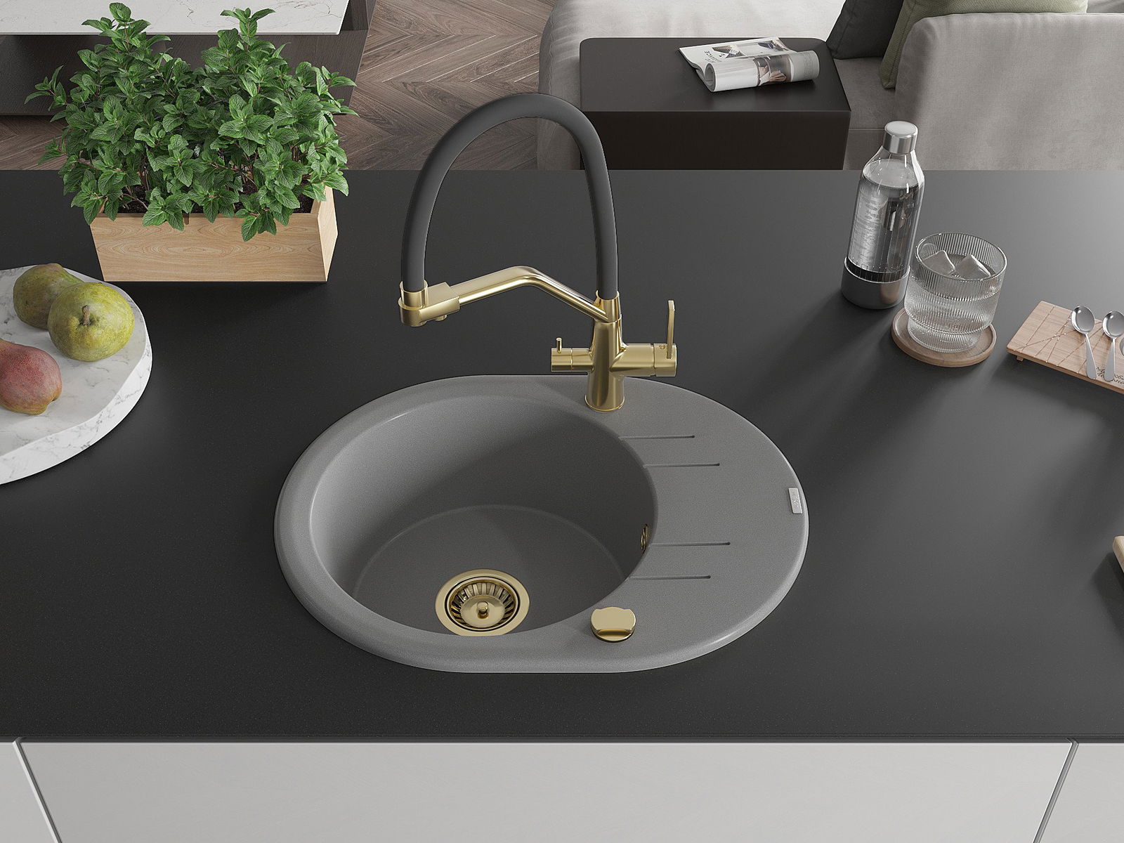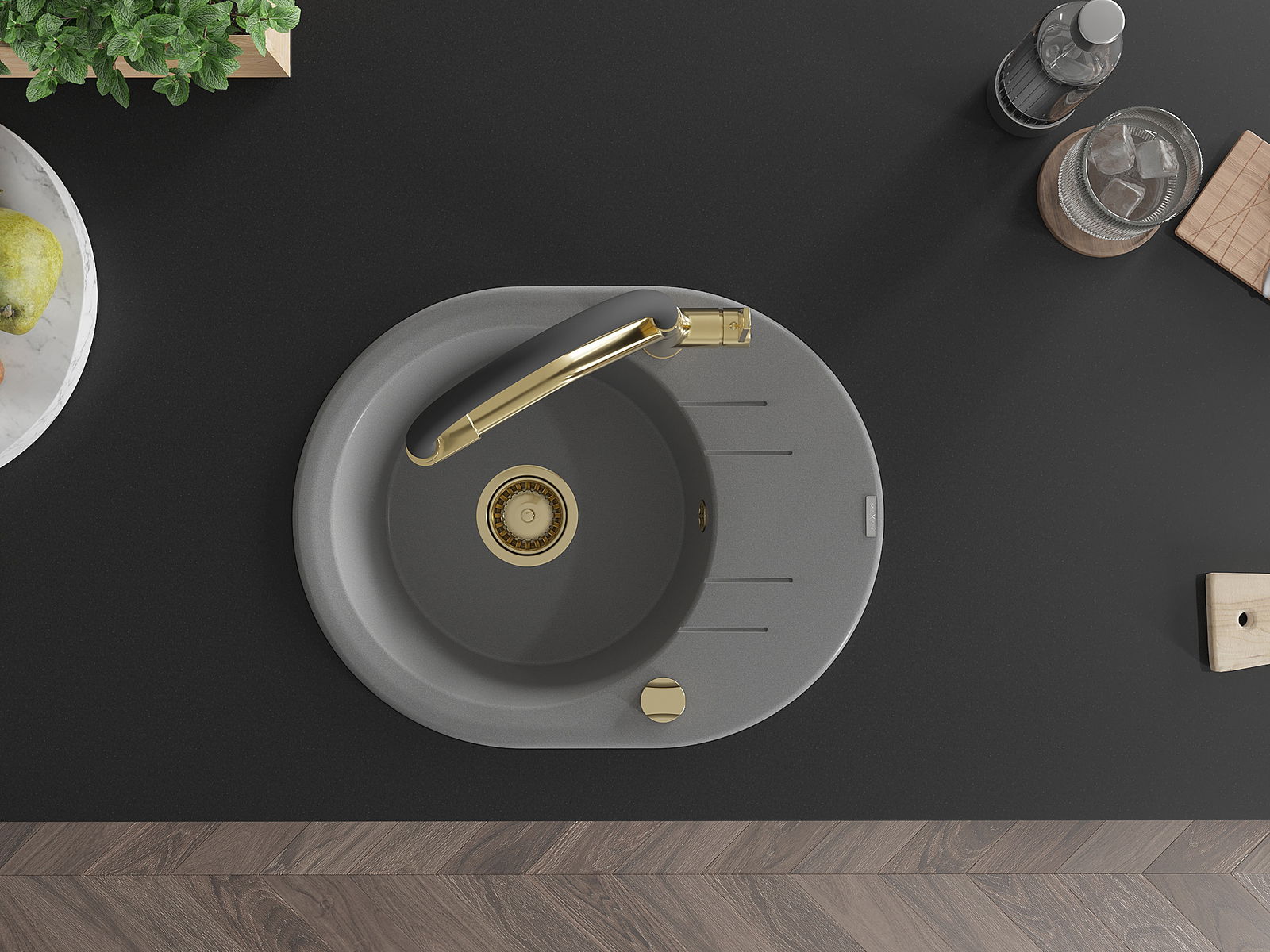 Mexen Kevin granitē izlietne ar 1 nodalījumu un virtuves jaucējkrānu Duo, pelēks - 6517-71-671701-57-G