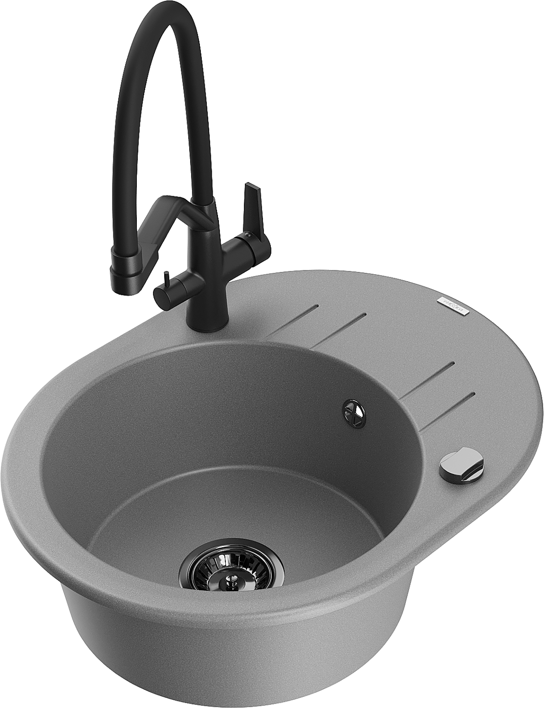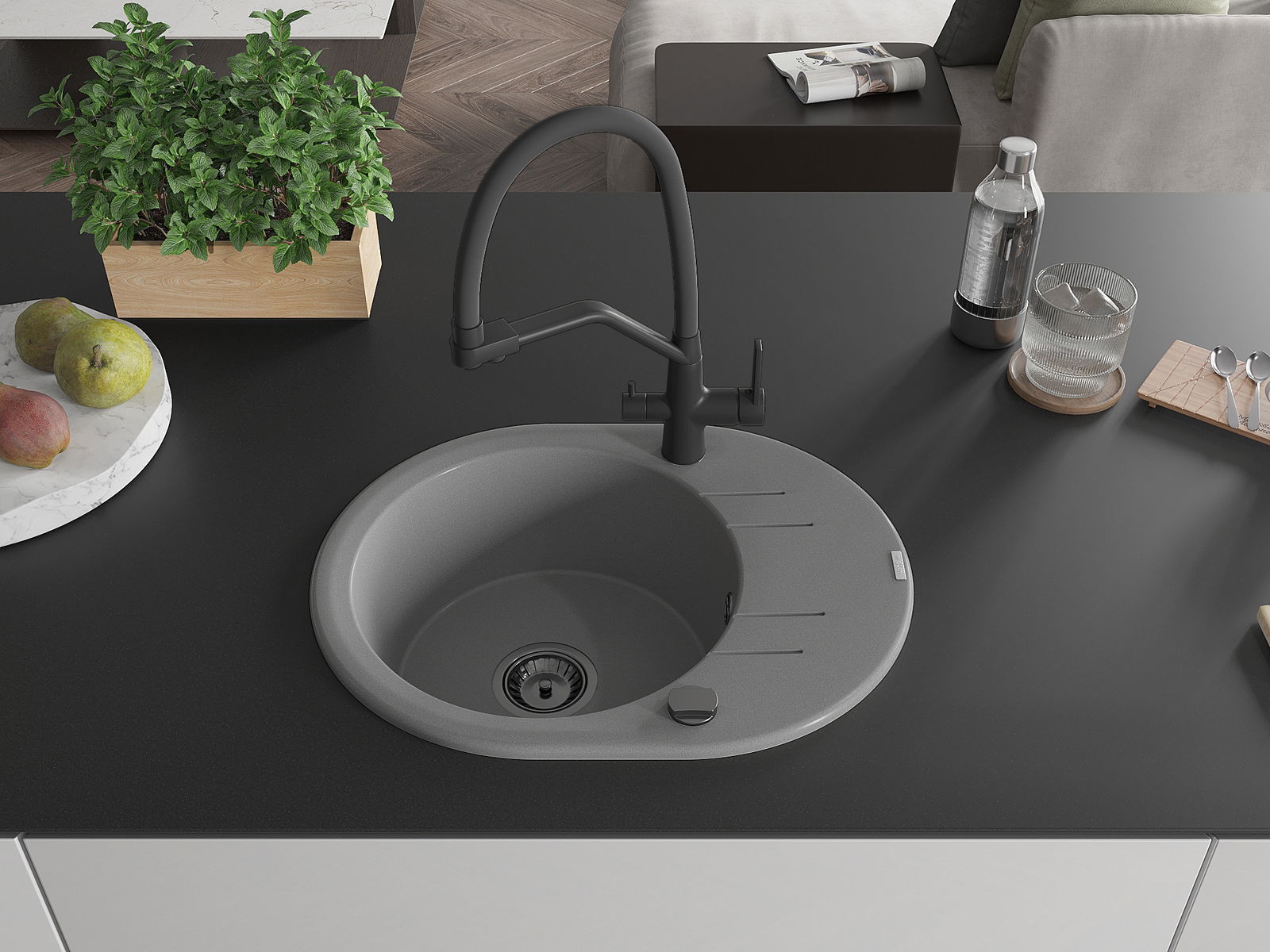 Mexen Kevin granitā izlietne ar vienu nodalījumu un duālo virtuves jaucējkrānu, pelēka - 6517-71-671701-70-B