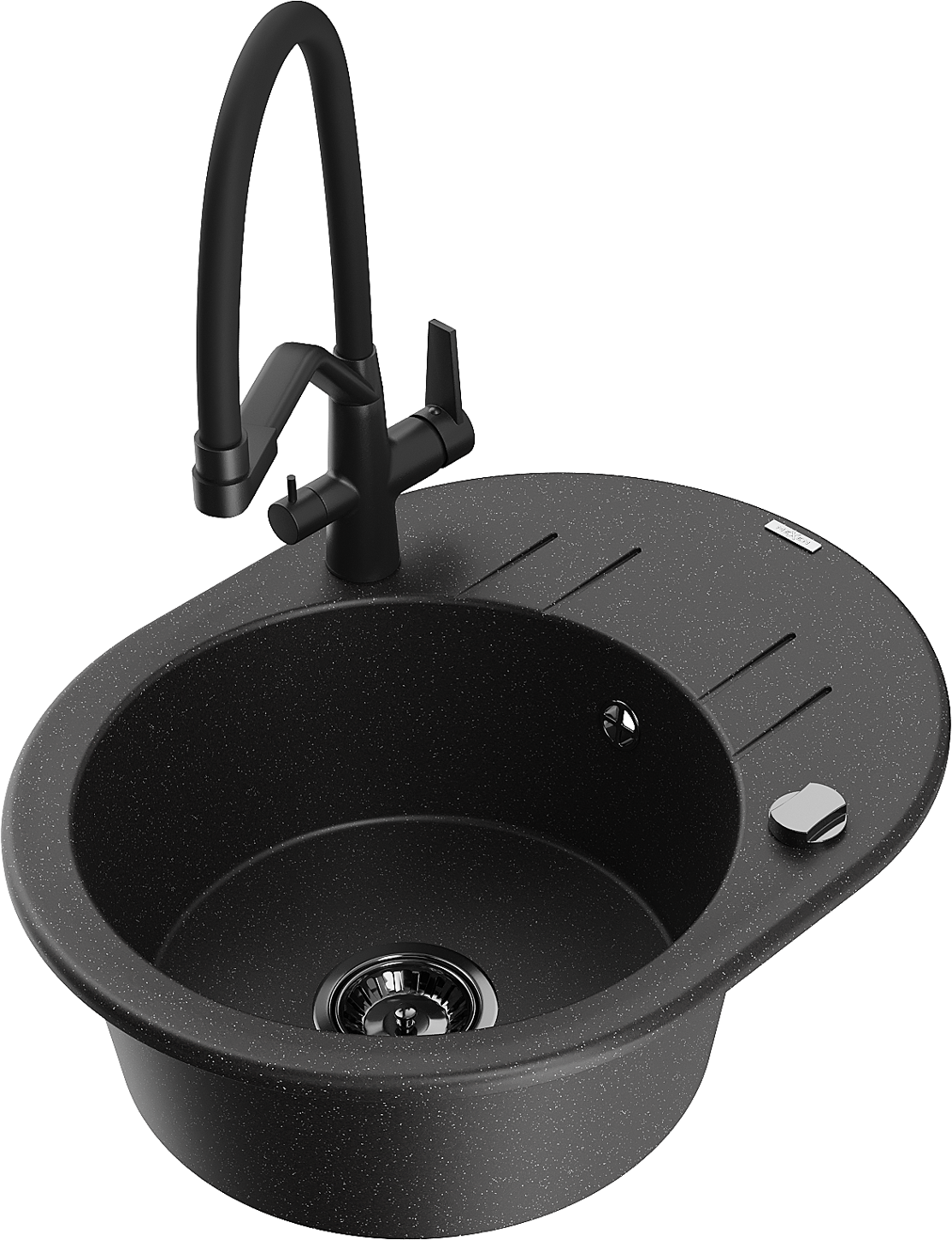 Mexen Kevin granitā izlietne ar vienu nodalījumu un virtuves jaucējkrānu Duo, melns/sudraba metāliks - 6517-73-671701-70-B