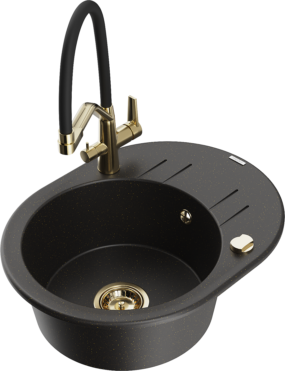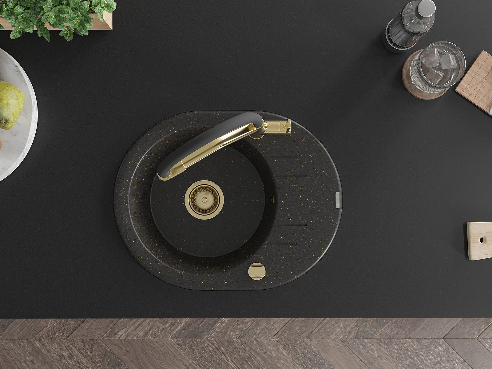 Mexen Kevin granīta izlietne ar 1 nodalījumu un virtuves jaucējkrānu Duo, melna/zelta metāliks - 6517-75-671701-57-G