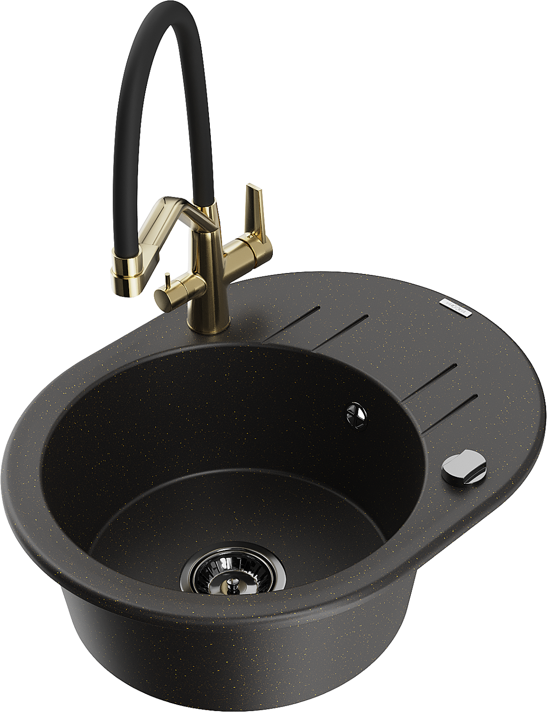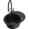 Mexen Kevin granit izlietne ar 1 nodalījumu un Duo virtuves jaucējkrānu, melna/zeltaina metālika - 6517-75-671701-57-B