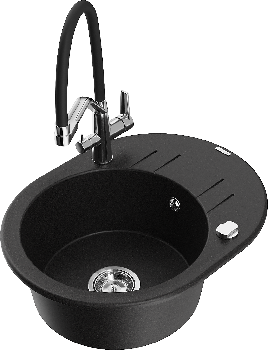 Mexen Kevin granitizlietne ar 1 kameru un virtuves jaucējkrānu Duo, melns - 6517-77-671701-07