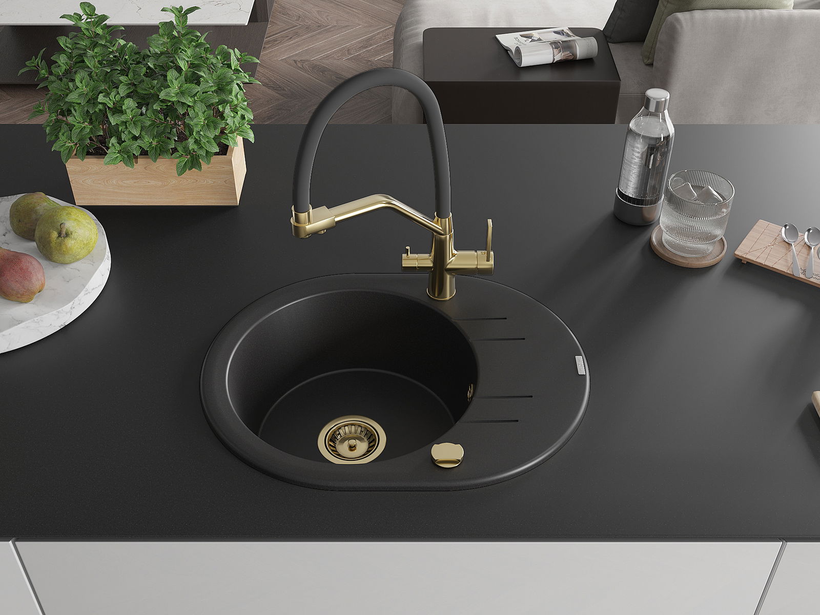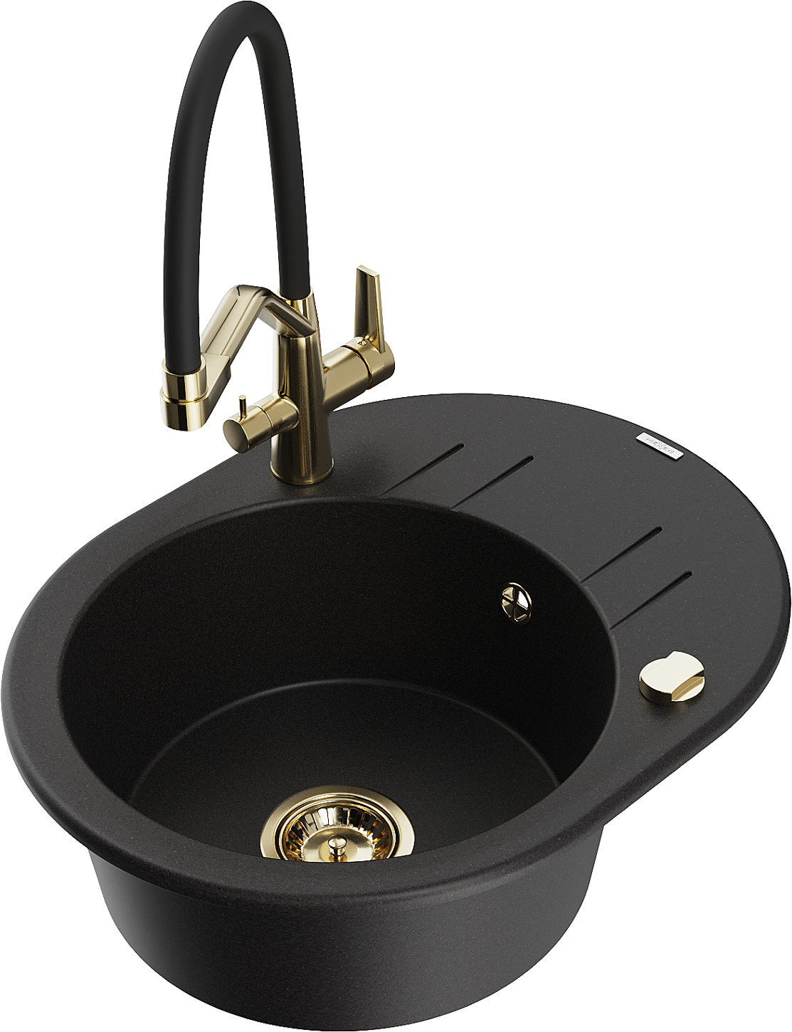 Mexen Kevin granitē izlietne ar 1 nodalījumu un virtuves jaucējkrānu Duo, melns - 6517-77-671701-57-G