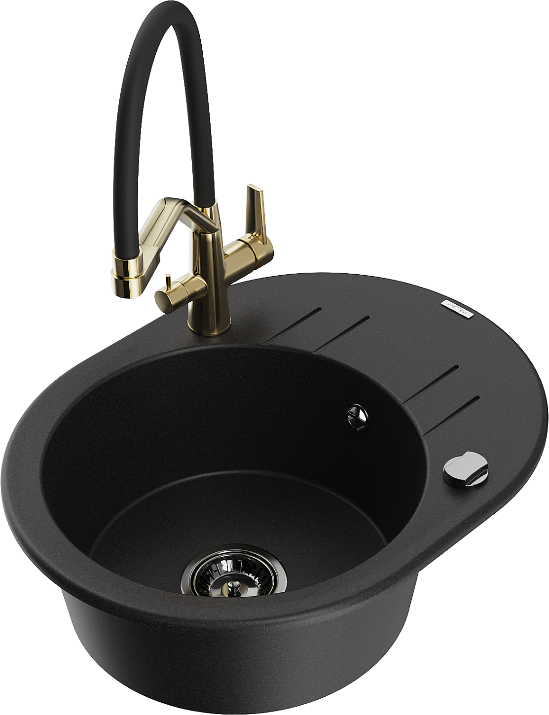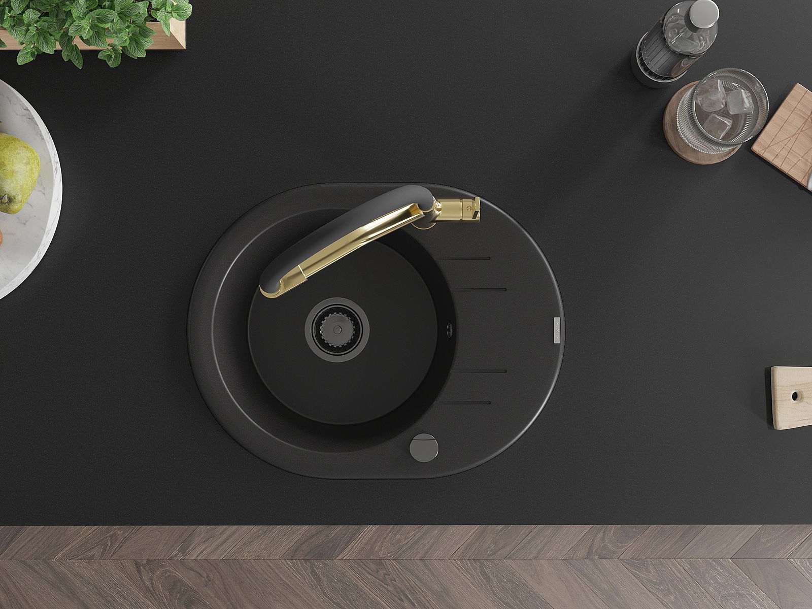 Mexen Kevin granīta izlietne ar vienu nodalījumu un virtuves maisītāju Duo, melna - 6517-77-671701-57-B