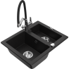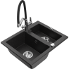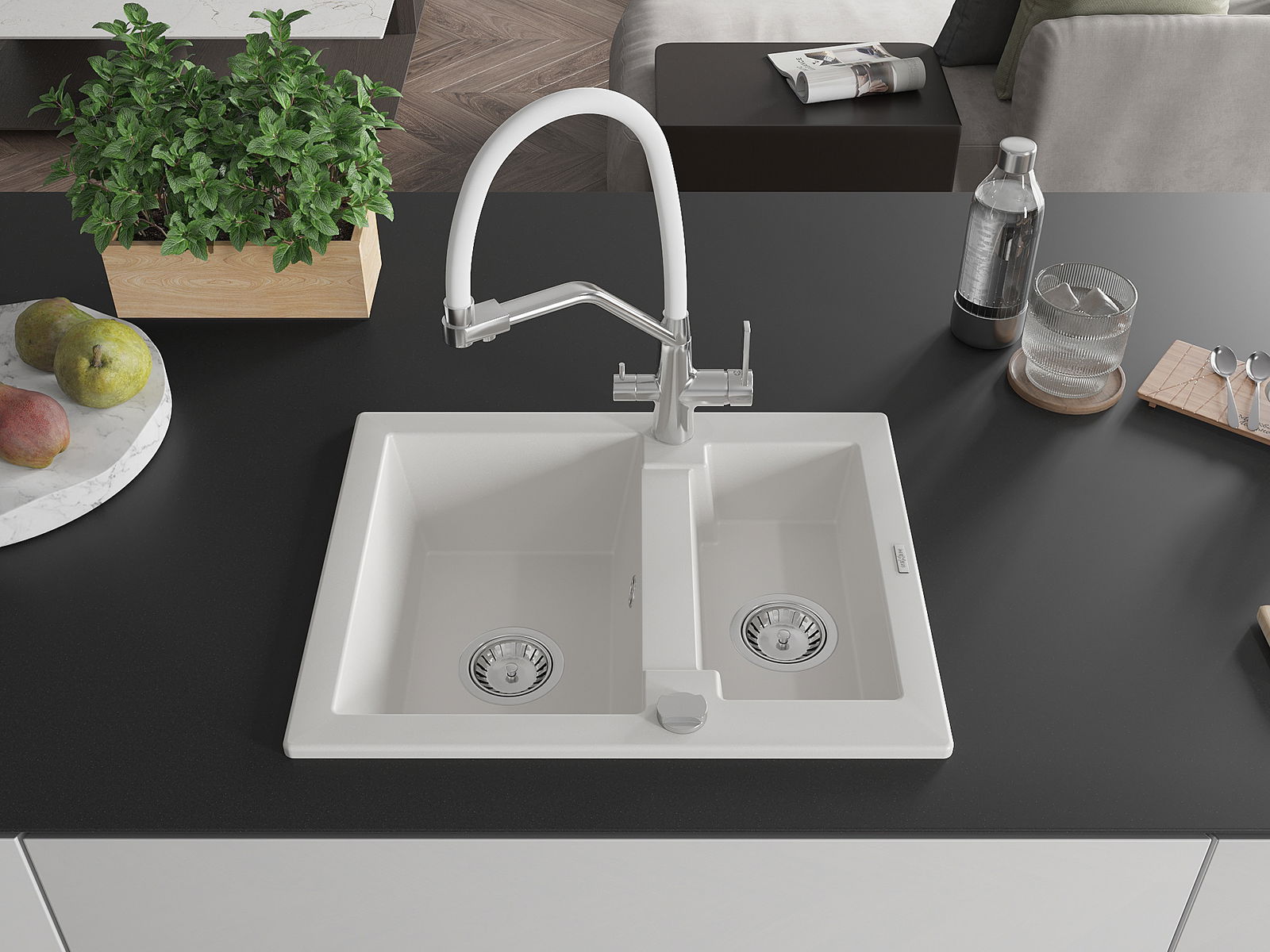 Mexen Carlos granīta izlietne ar 1,5 kamerām un virtuves jaucējkrānu Duo, balta - 6518-20-671701-02