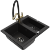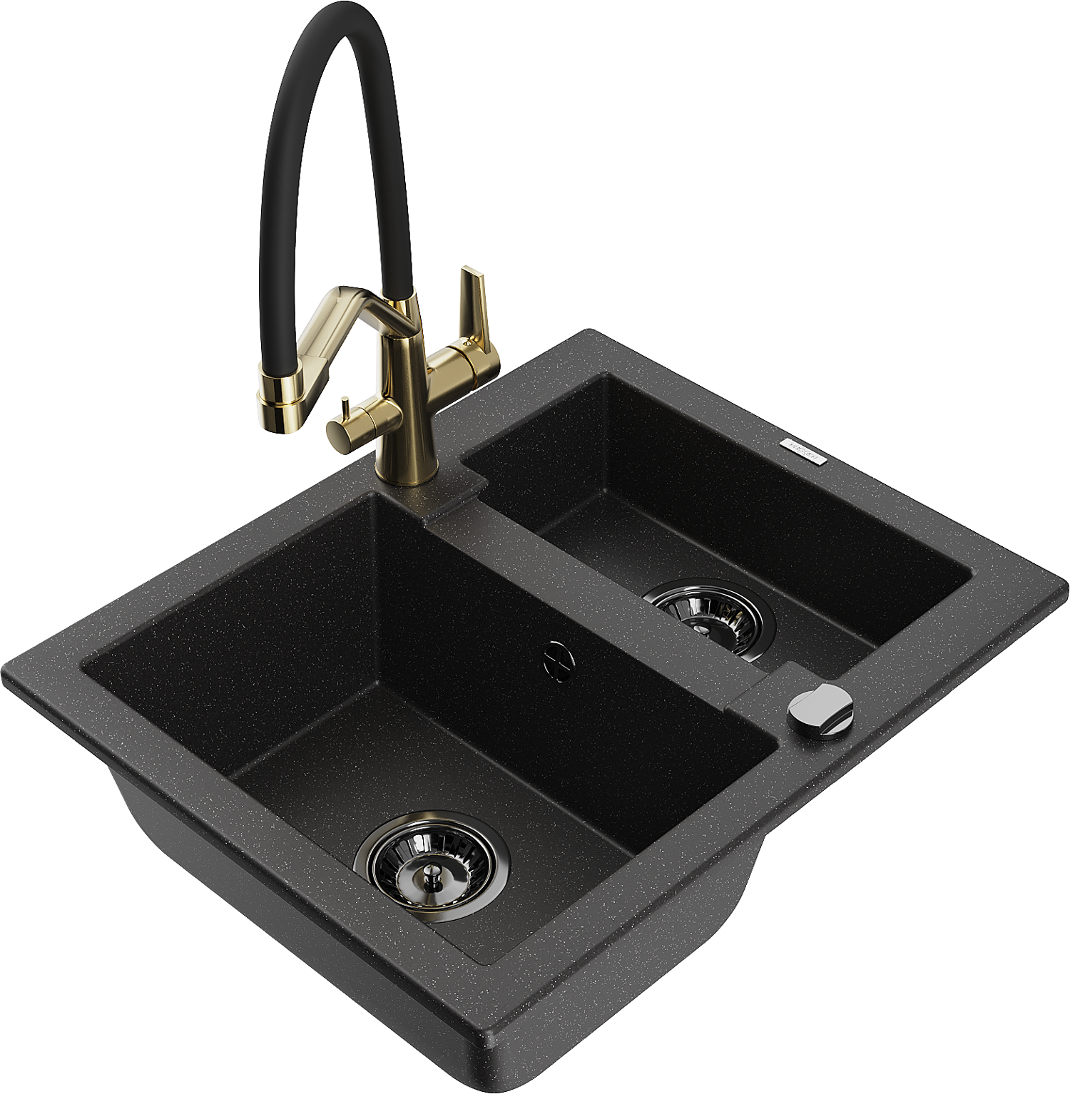 Mexen Carlos granitē izlietne ar 1,5 kamerām un virtuves jaucējkrāns Duo, melns/sudraba metāliks - 6518-73-671701-57-B