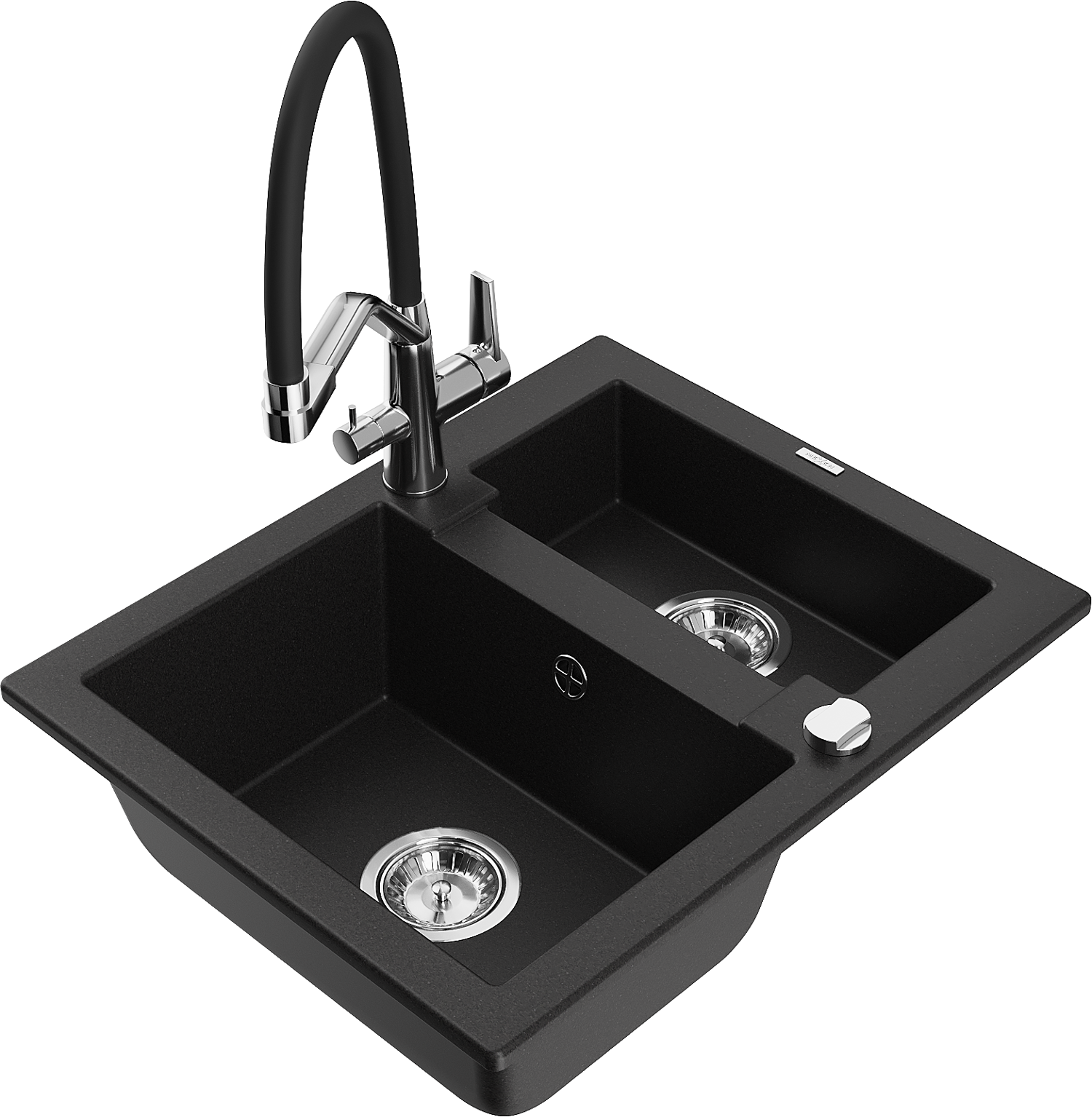 Mexen Carlos 1,5 nodalgrādu akmens izlietne ar virtuves jaucējkrānu Duo, melna - 6518-77-671701-07