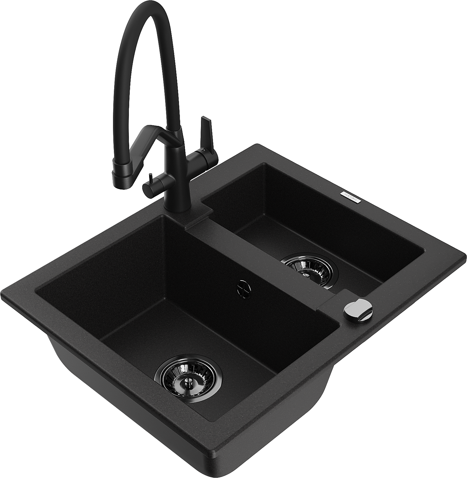 Mexen Carlos granit izlietne ar 1,5 kameru un duo virtuves jaucējkrānu, melna - 6518-77-671701-70-B