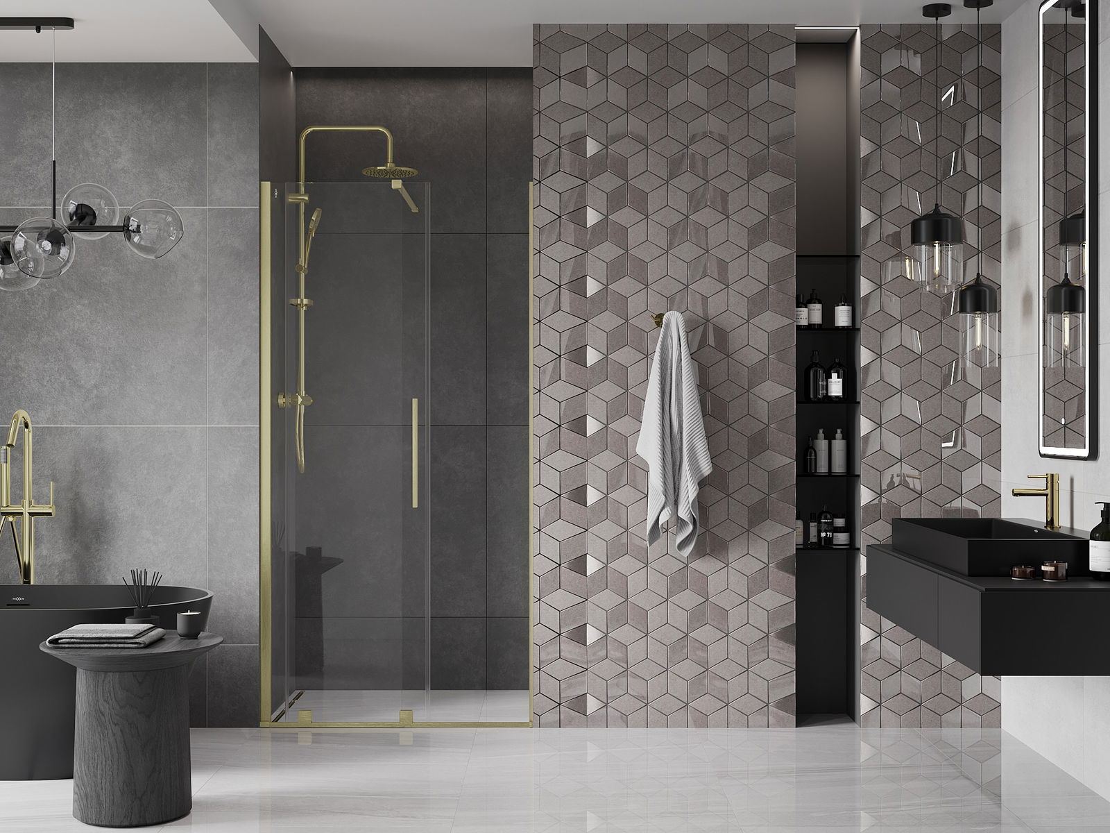 Ērts un parocīgs rokturis ir izgatavots no nerūsējoša tērauda. Modernā forma apvienojumā ar apdari, kas saskaņota ar profilu krāsu, piešķir kopējo modernu un stilīgu izskatu, izceļot katras vannas istabas estētiku.