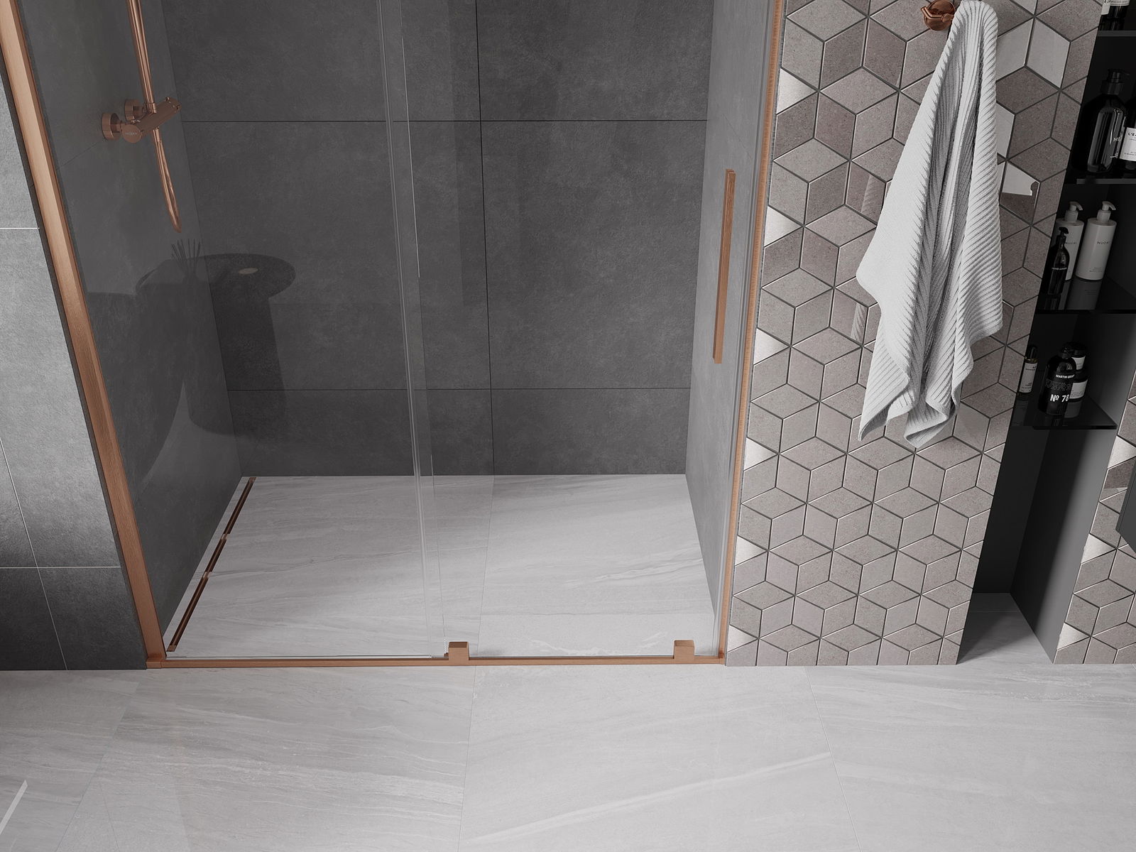 Mexen Velar bīdāmās dušas durvis 160 cm, caurspīdīgas, matēts varš - 871-160-000-01-65