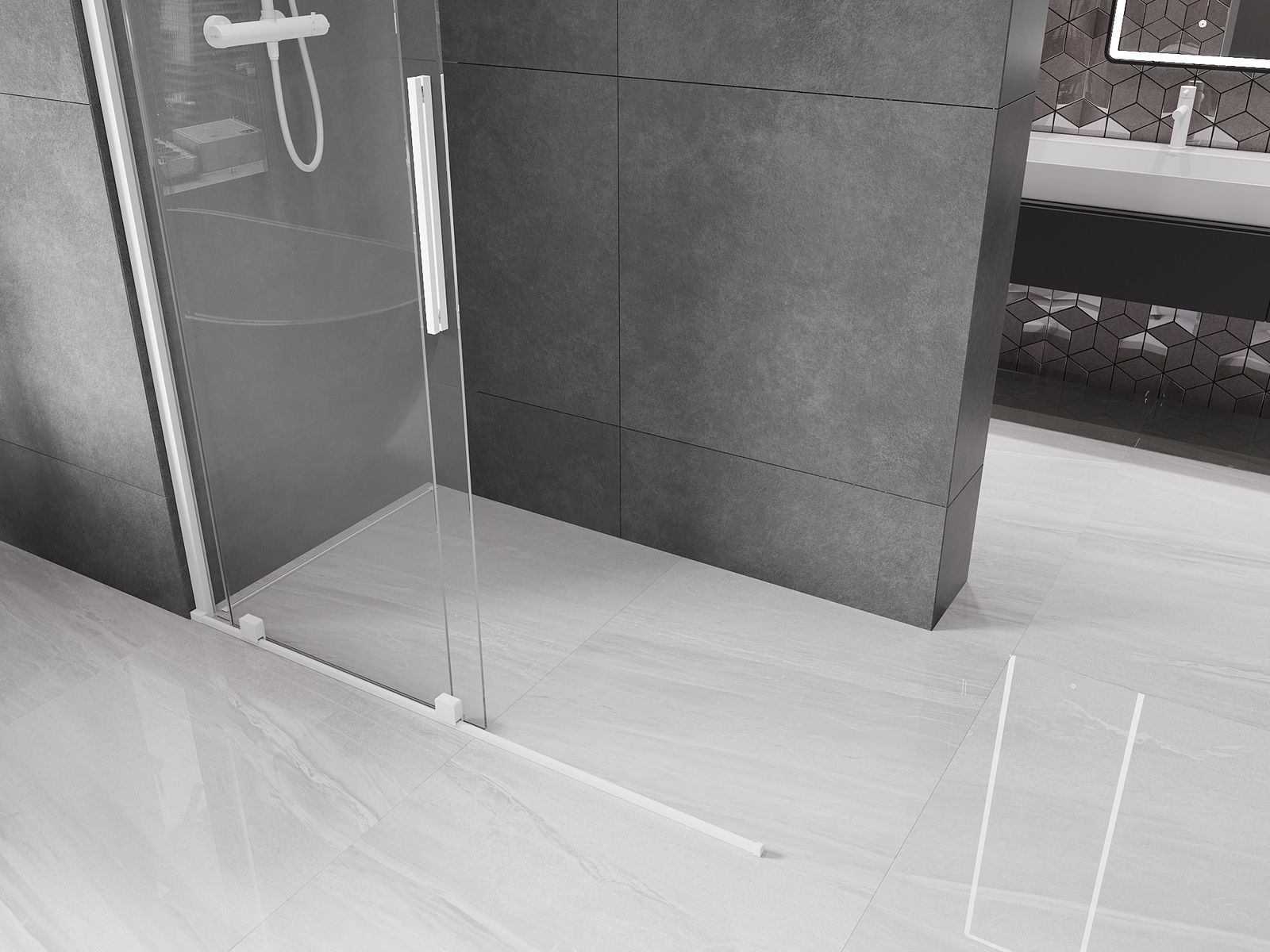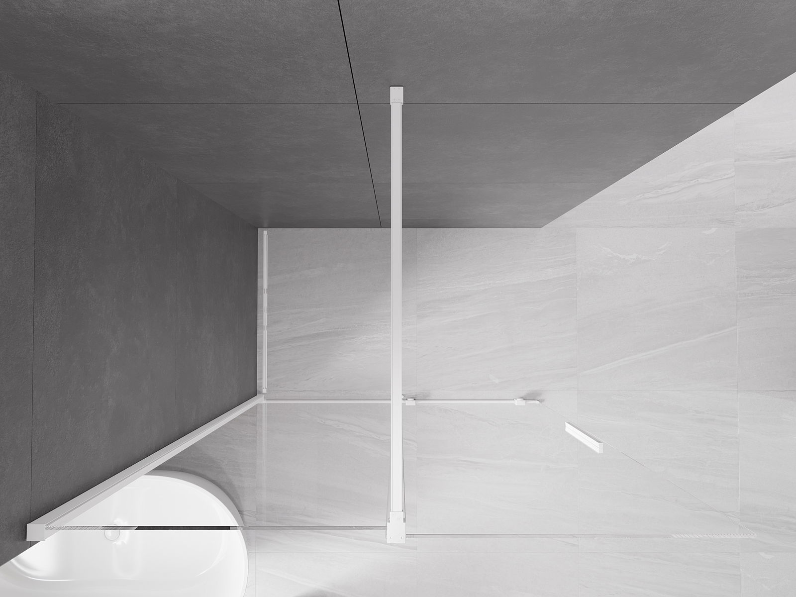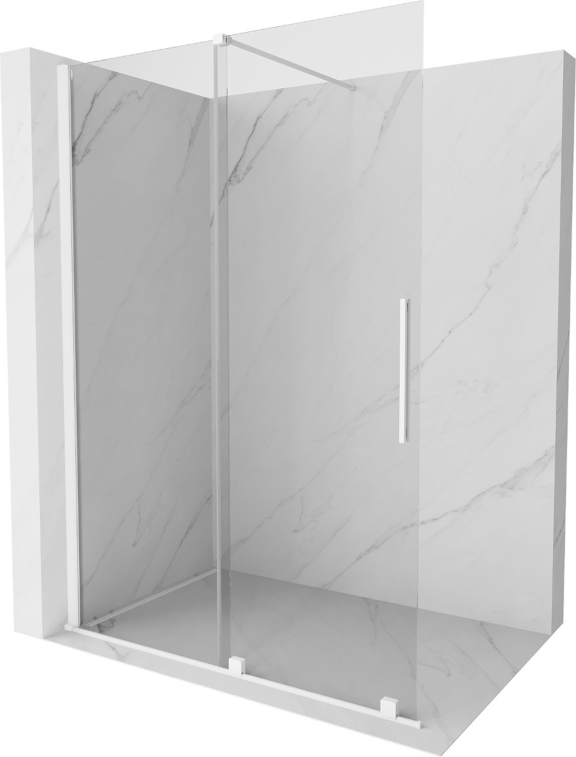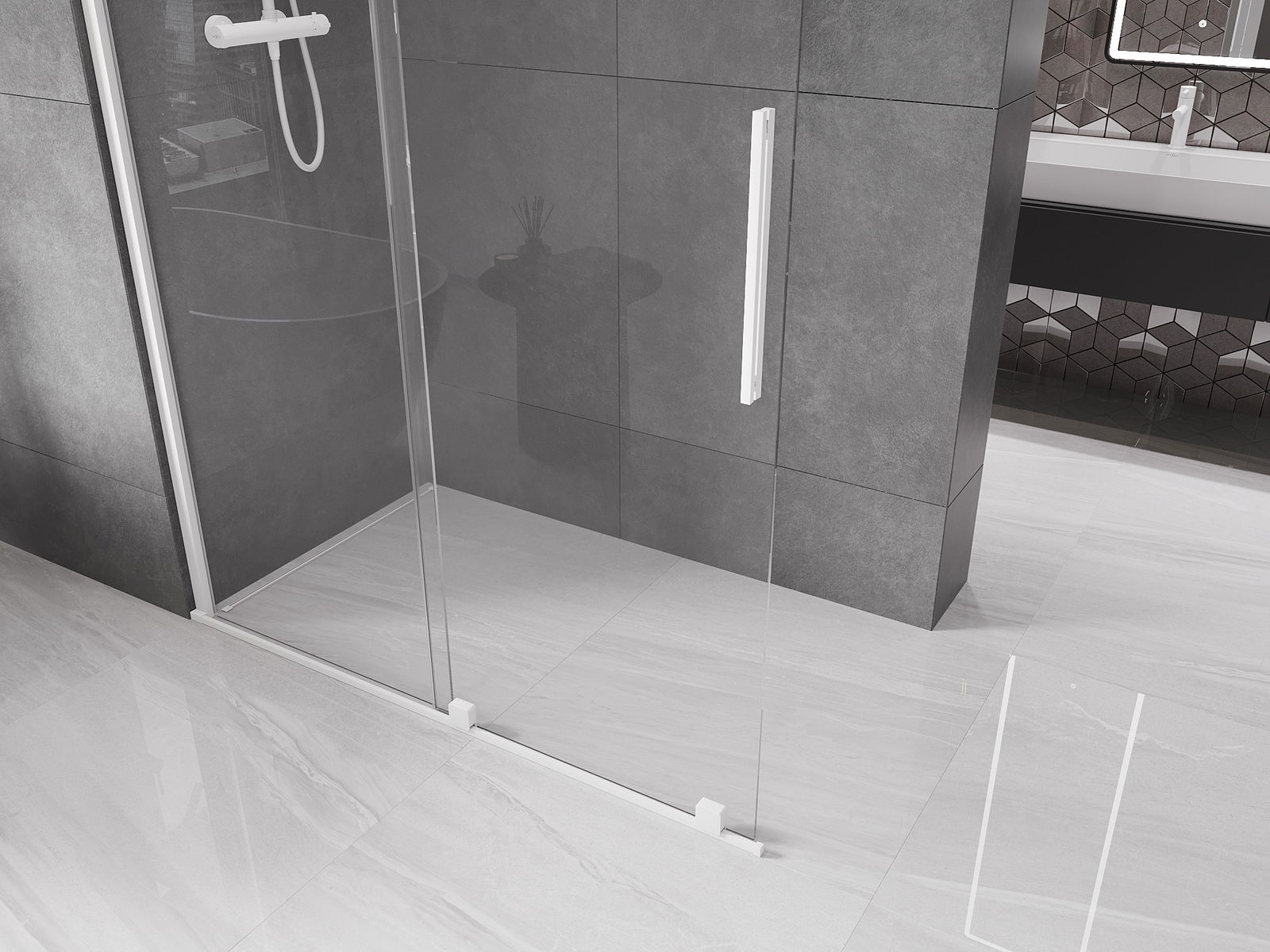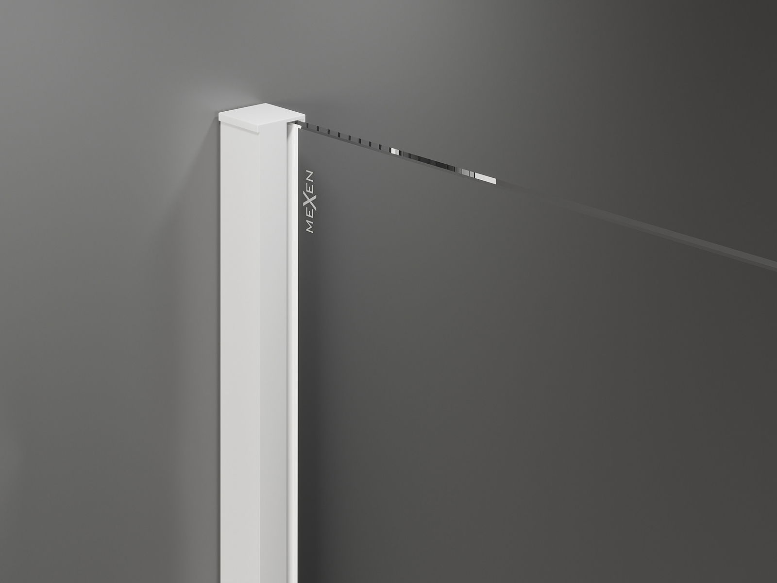 Mexen Velar bīdāmā dušas siena Walk-in 130 x 200 cm, caurspīdīga 8 mm, balta - 871-130-000-03-20
