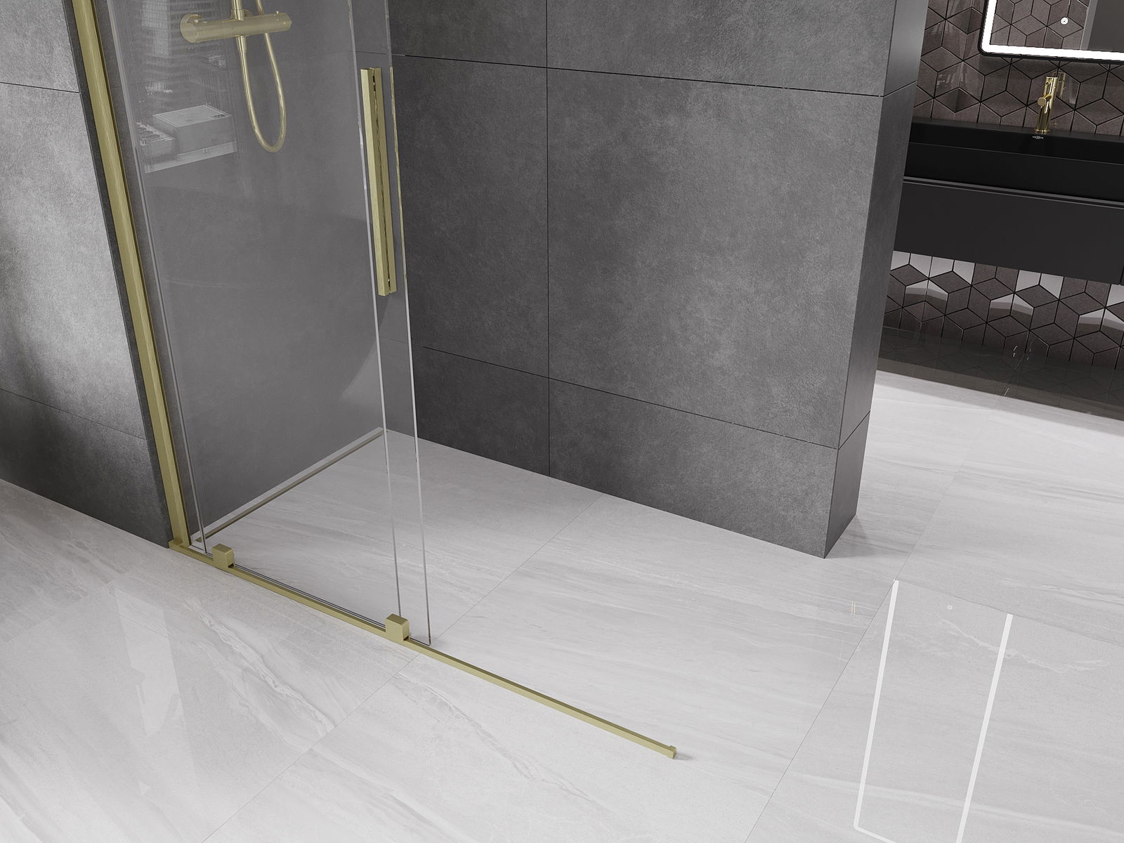 Mexen Velar bīdāmā dušas siena Walk-in 140 x 200 cm, caurspīdīga 8 mm, zelta birstēta - 871-140-000-03-55